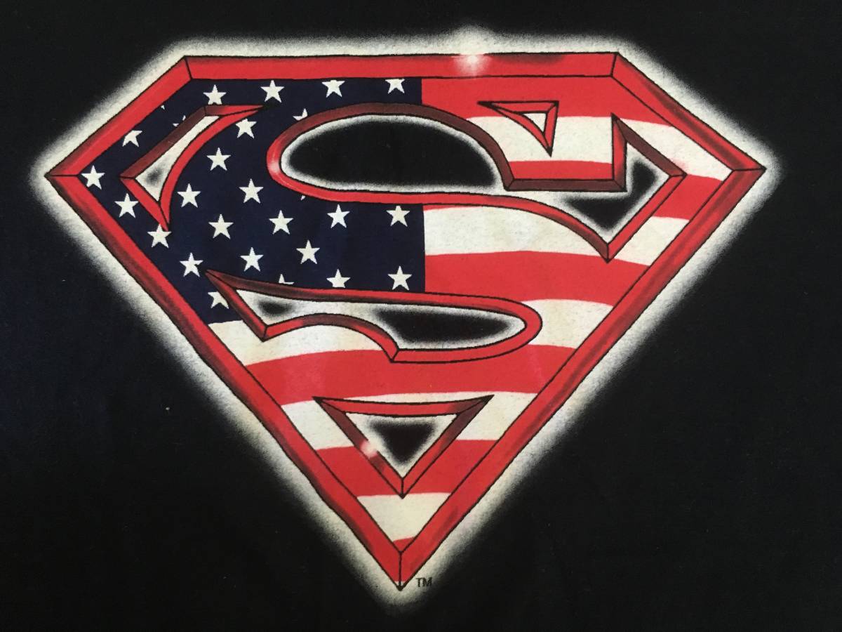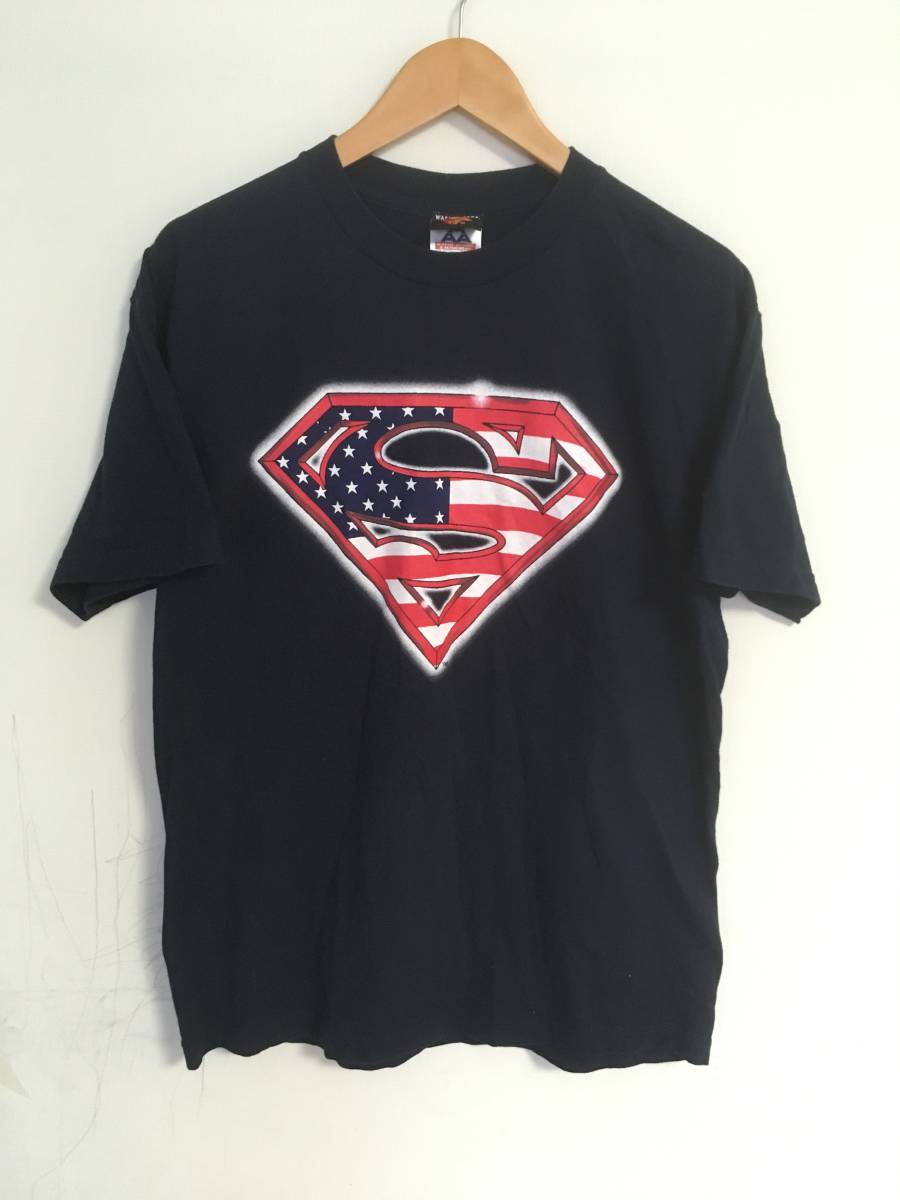 ★ワーナーブラザーズWARNER BROSスーパーマンTシャツUSA製Lネイビー国旗アメリカ星条旗