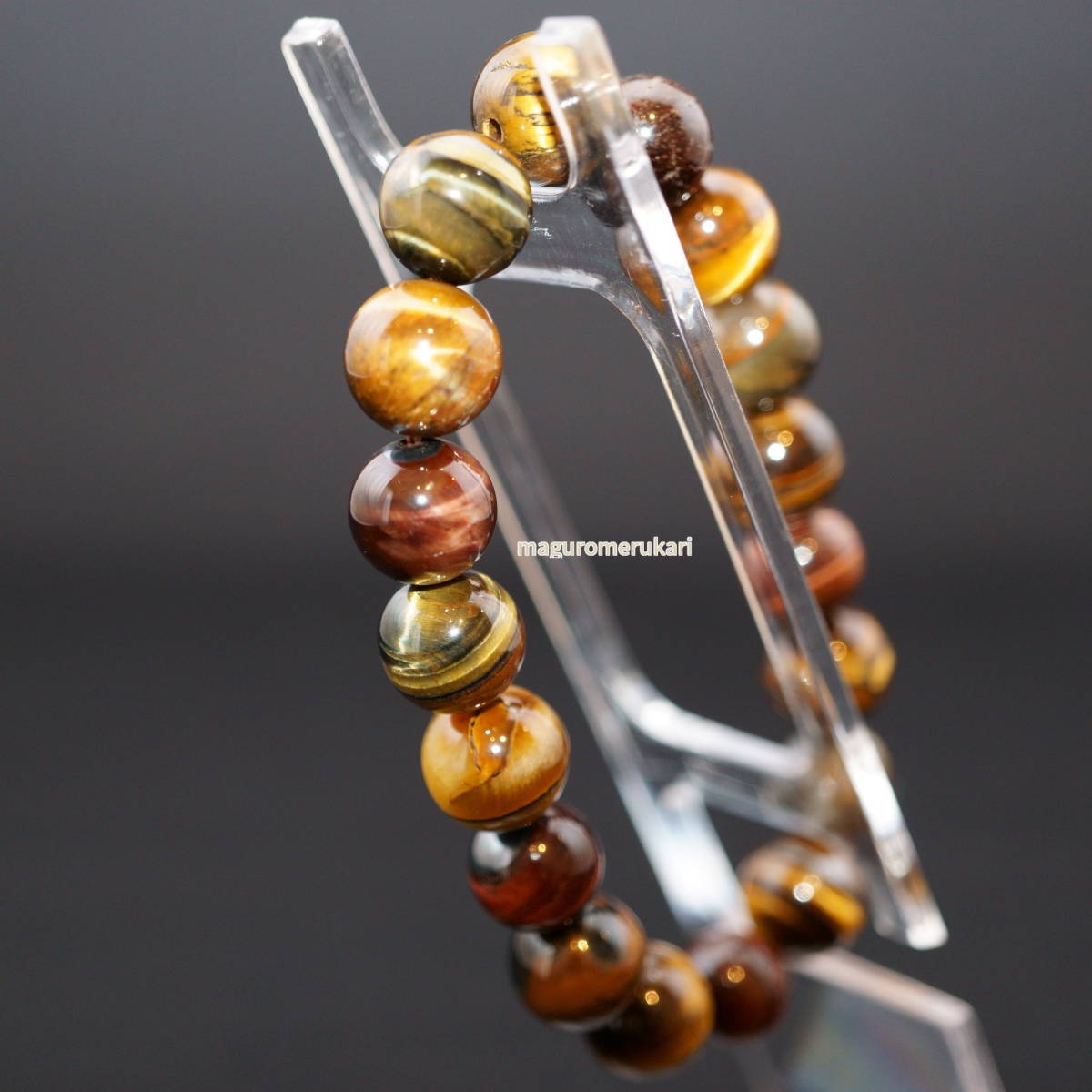 10mmのタイガーアイを使用したブレスレットです。 タイガーアイ、レッドタイガーアイなどの1個1個微妙に異なる色味をミックスしており、石だけでなくアースカラーのパワーを期待できます。 ・全てのビジネスに ・職場などの人間関係で悩んでいる方 ・家族円満で居たい方 ・人脈を広げたい方 ・邪気から身を守りたい方 などにおすすめです。 宝石言葉 洞察力・好奇心・独立・知識・富貴 金運や仕事運を高め、願望の達成をサポートしてくれる石として高い人気を誇るタイガーアイ。その『眼』のパワーは洞察力を高め、物事の本質を見抜き、災厄を退け、成功をもたらすといわれています。 | |
