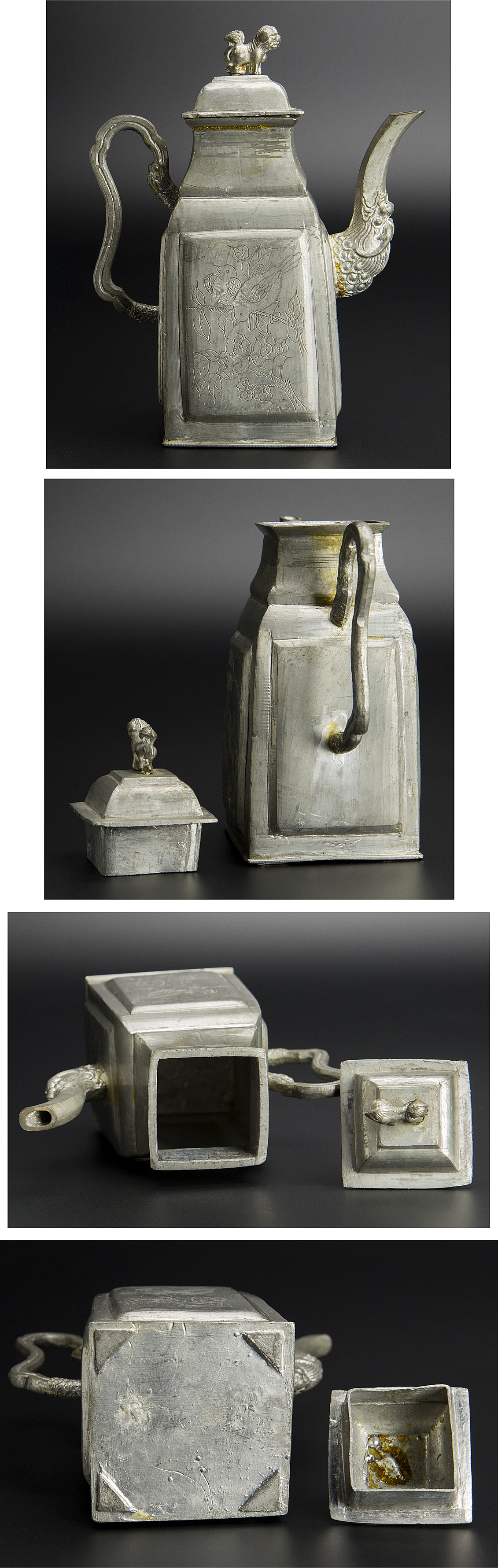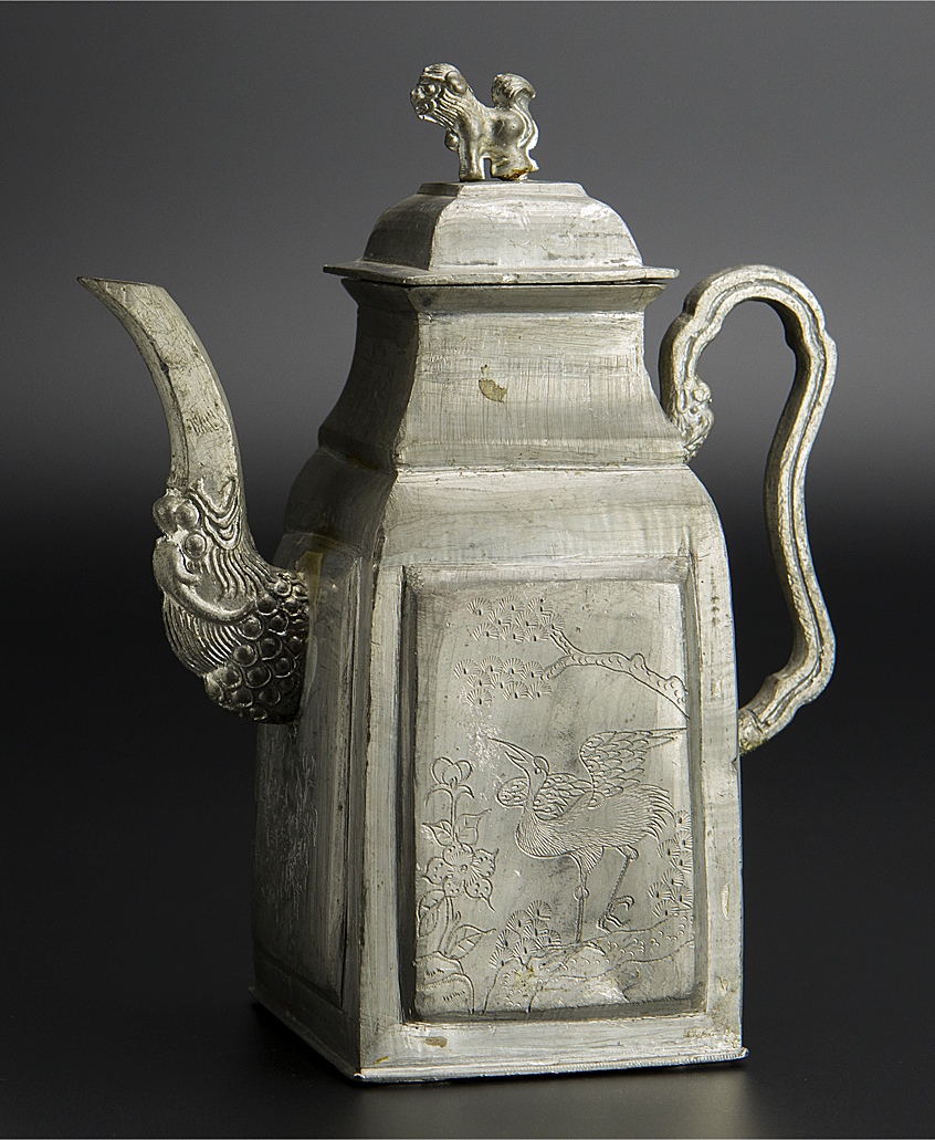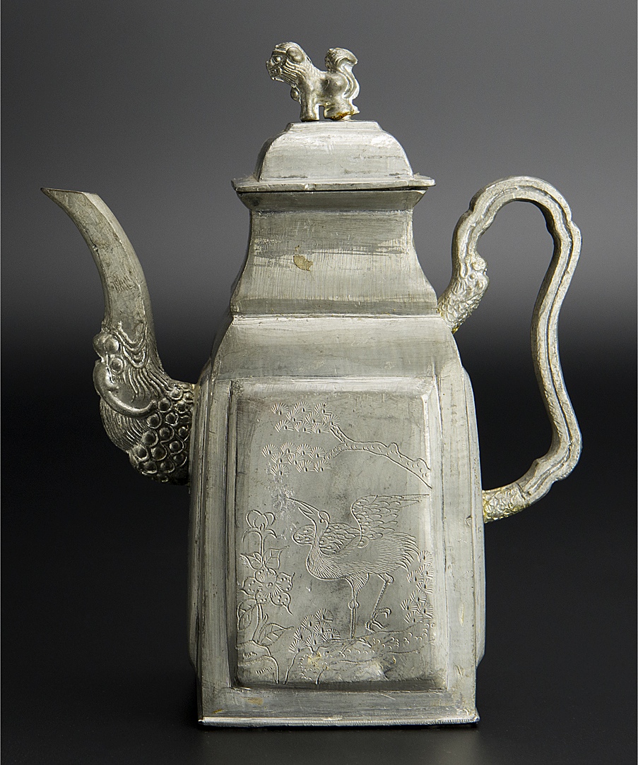 清 錫花鳥紋水注 煎茶道具 中国 古美術