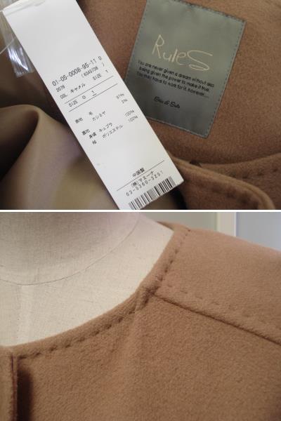 未使用訳あり◆Rules◆ノーカラー 高級ウールコート キャメル 1