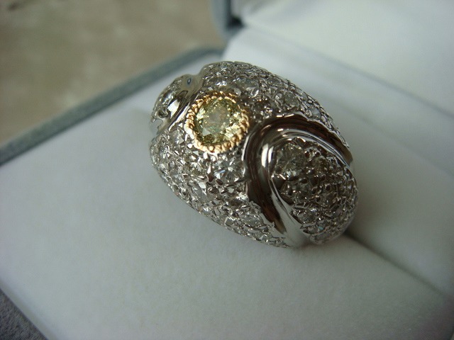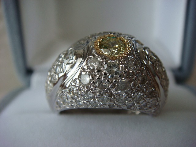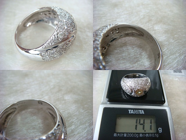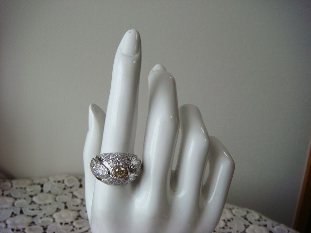 | ご覧頂きましてありがとうございます! 豪華なダイヤモンドリングです。サイズは約15です。K18WG製です。 真ん中のダイヤは0,365カラットのライトイエローです。Sクラスです。メレダイヤは2,03カラットです。 重さは約14gもあります。新品仕上げ済み。 新品のケースに入れてお届けいたします。 追加画像がありますのでパソコンでご確認ください。 宝石との出会いは一期一会です。『いいな』と思ったら是非、身につけてあげて下さい。きっと宝石も喜ぶことでしょう! 宝石は決して貴女を裏切りません。身につけた貴女を守ってくれることでしょう。 いつも頑張っている自分へのご褒美にいかがでしょうか? 良いものをひとつお持ち下さい。一生物のジュエリーとなります。 画像での判断は難しいと思いますが、落札後の返品、クレーム等の無きよう、目利きの方、お解りになる方、面白そうだなと思った方、ご自分の自己責任においてご入札下さい。 モニター、パソコン、カメラによって色や感じ方が変わりますのでご注意下さい。商品についてはコレクター、質屋さん、お客様の委託品が中心ですので、ご質問の答えが遅くなる事がありますがご了承下さい。 商品説明につきましてはすべてをお知らせできませんので、質問にてお願いいたします。 基本的にはUSED品ですので、その点を十分にご理解の上ご入札下さい。途中で出品を取り下げる場合もありますがご了承下さい。 尚、トラブル回避の為、申し訳ございませんが、新規の方及び評価によってはこちらで入札を削除させていただく場合もございますが、ご理解下さい。 メールの確認は夜になりますのでご連絡が遅くなることもありますがご了承願います。 品物にも人と同じように『こころ』があると思います。喜んでいただけることが私にとっても品物にとっても一番良いことだと思います。 『落札したけど気に入らなかった』ということが無いように十分にお考えになってからご入札下さい。 発送は宅配便を予定しております。また発送には2,3日かかる場合もございますが、ご了承願います。 落札金額より僅かですが『子ども虐待防止 オレンジリボン運動』へ寄付をさせていただきますがご了承お願いいたします。 | |