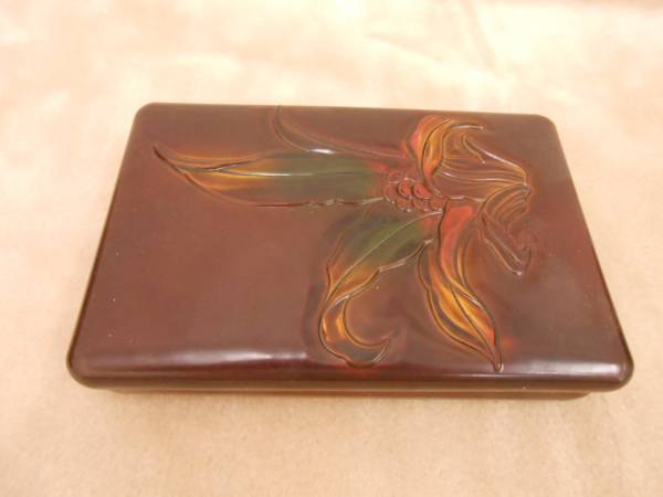 ●和 浮彫り風 小物入れ 印鑑など 花柄 二段  仕切り 茶色  12.5㎝x19㎝
