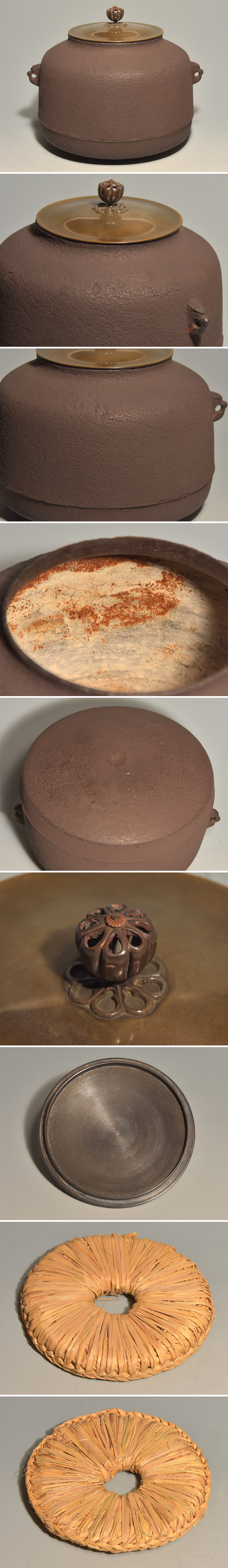 釜師 増山 馨鉄(作)素文尾張釜です。 温かみを感じる釜肌に、重量感のある立派な蓋が付いております。 状態も大きなダメージなくコンディションは良好です。 ※撮影の際に生じた写り込みなどがございます。 ご理解の程よろしくお願い致します。 |
