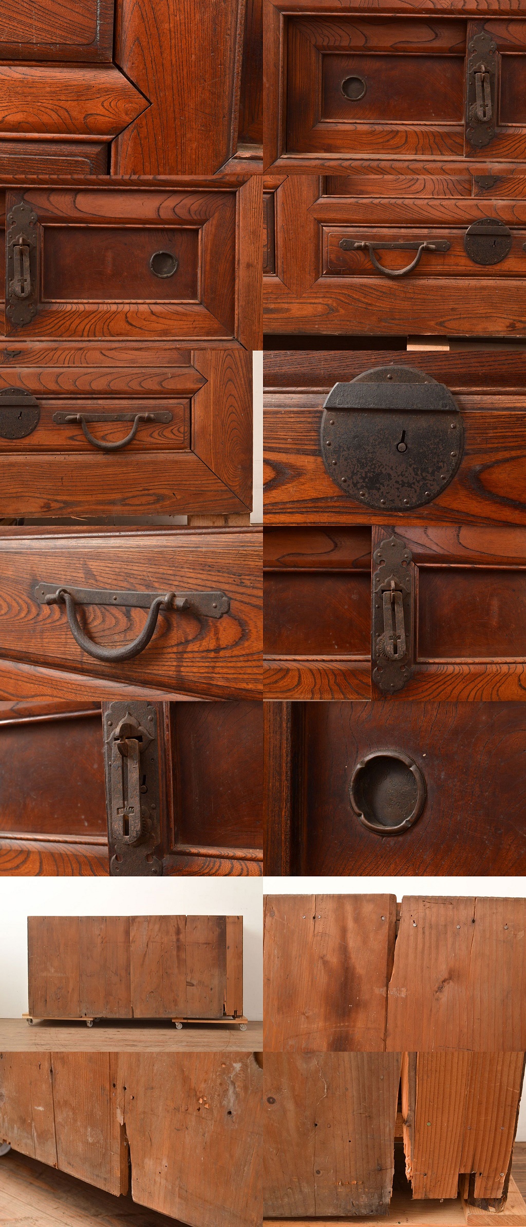 R-049299 アンティーク家具 六尺 前面ケヤキ材 極太框 上質な空間を演出する収納箪笥サイドボード(テレビ台、夜具箪笥)(R-049299)