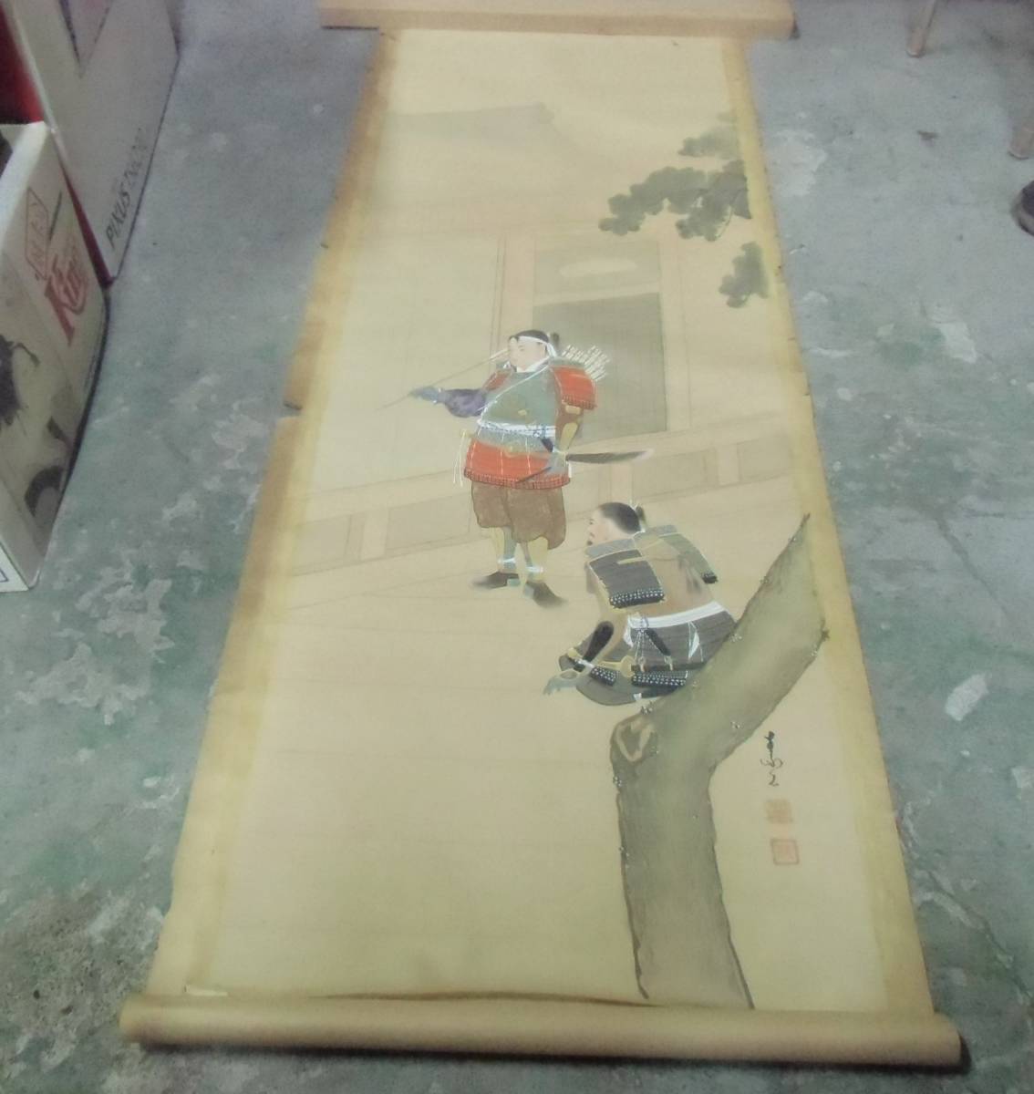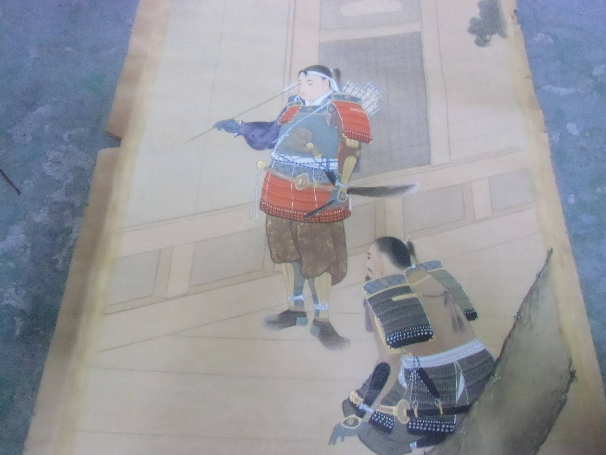 ▲モ-133 絵画 武者絵 まくり 歴史画 時代物 当時物 画寸:縦120cm幅44cm