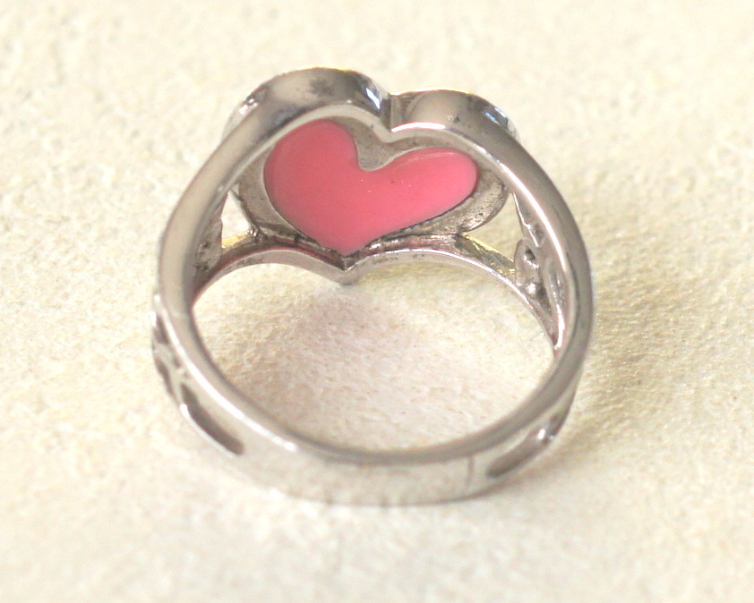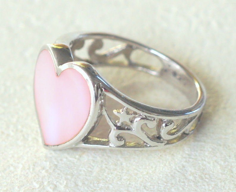シルバー925製 ピンクのハートのシェル付きリング 約11号