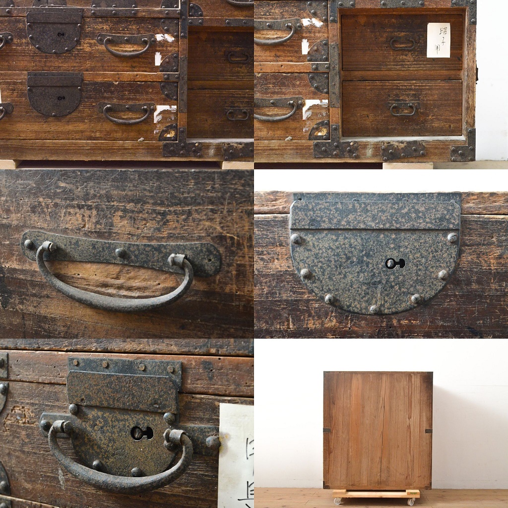 R-054400 和製アンティーク 三方桐材 渋い佇まいが目を引く小振りな帳場箪笥(引き出し、和タンス、収納箪笥、チェスト)(R-054400)