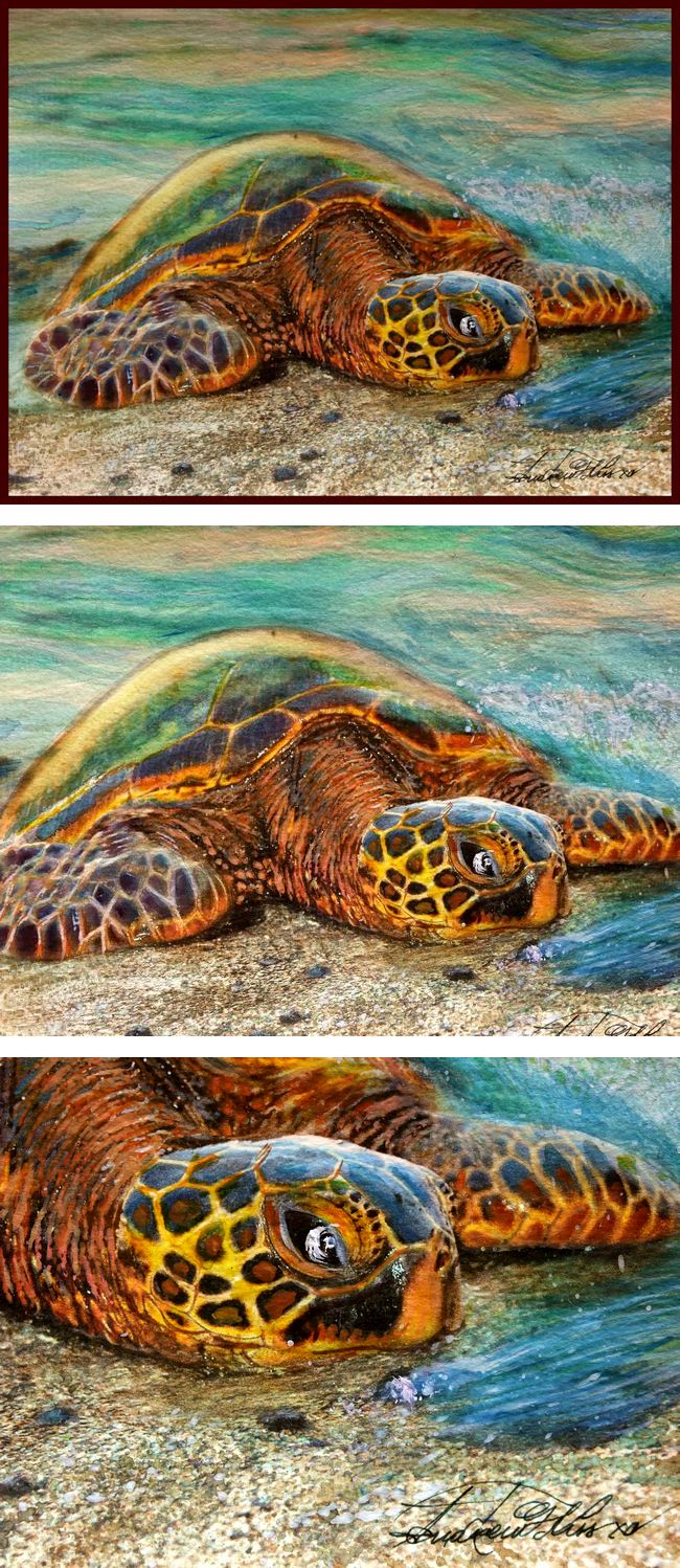 | 美しい水彩画「最初に帰ってきたアオウミガメ」 | |