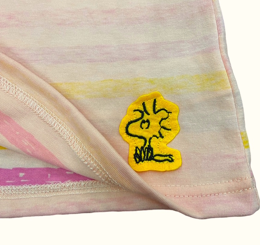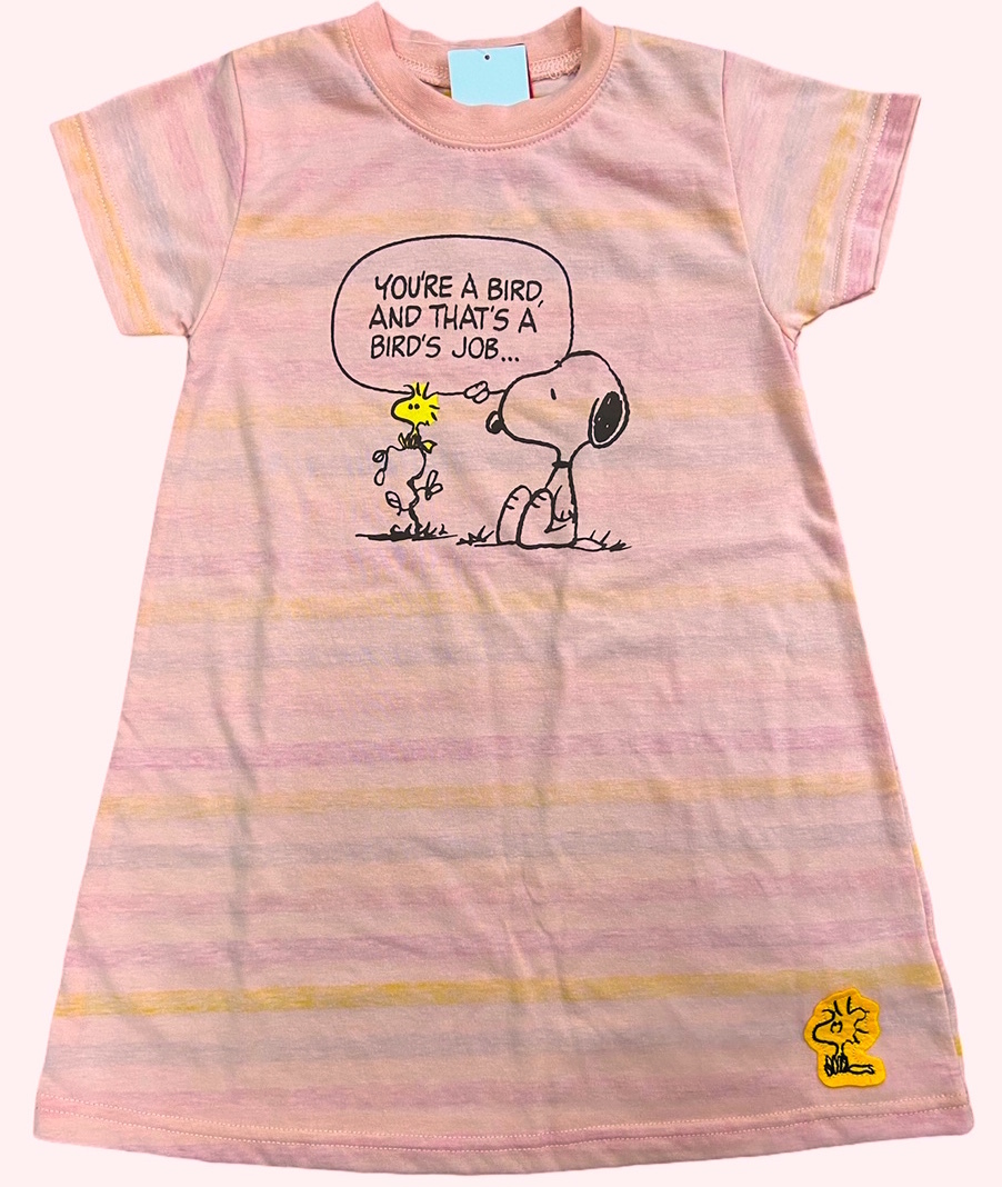 即決 新品タグ付 ピーナッツ PEANUTS スヌーピー 女児★子供 ワッペン 天竺 ワンピース★110cm 5-6才 ¥1650★ポイント消化にも