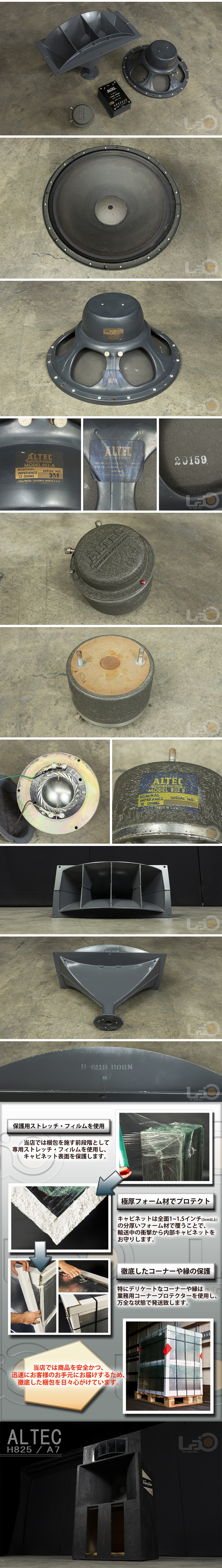ALTEC アルテック H825 / A7 [概要] 本品は1950年代にALTEC社から発売された [仕様] 【 803A 16Ω 】 [エンクロージャー仕様]