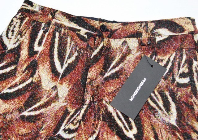 「PHENOMENON (フェノメノン)」の FEATHER SHORTS フェザーショーツ です。 ・素材:表地:レーヨン79% / コットン18% / ポリエステル3%、裏地:ポリエステル100%。 ・カラー:ワイン。 ・サイズ:26/S。 実寸 ・ウエスト 約70cm・股上 約26cm・股下 約6.5cm・腿幅 約27.5cm・裾幅 約26.5cm。(多少の誤差はお許しください) ジャガード織りでフェザー柄を表現したショートパンツです。 スタンダードなシルエットでありながら、インパクトのあるフェザーは、アレンジ次第でカジュアルにもシックにも幅広い着こなしが楽しめるスタイリングの主役となるアイテムです。 新品。タグ付き。定価¥24840(税込)。日本製。 かなりお値打ちだと思います。この機会にぜひ!。 他にもいろいろ出品しています。 管理番号:031606MY-078503PD152301-500★ |