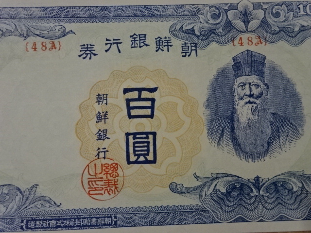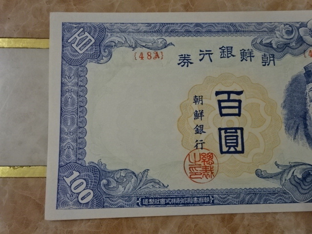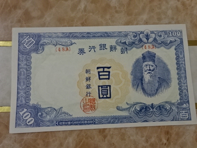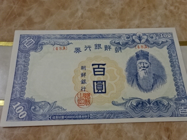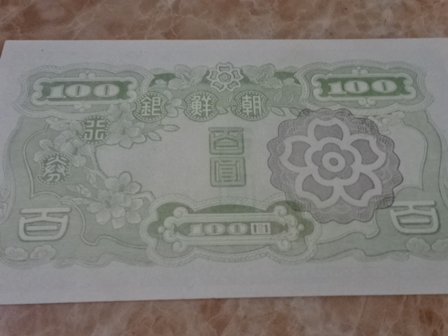 朝鮮銀行券 朝戊100円券の未使用~です。