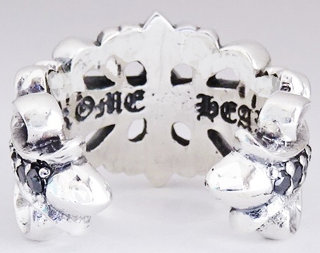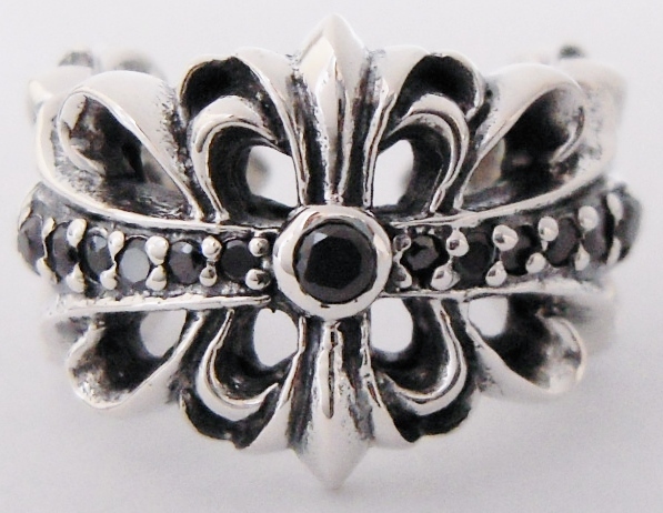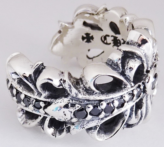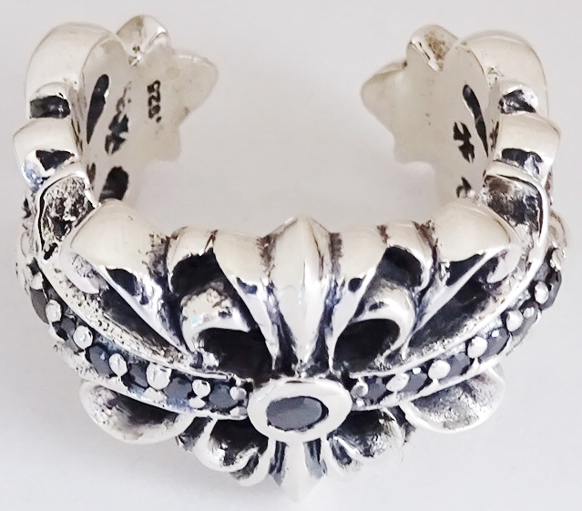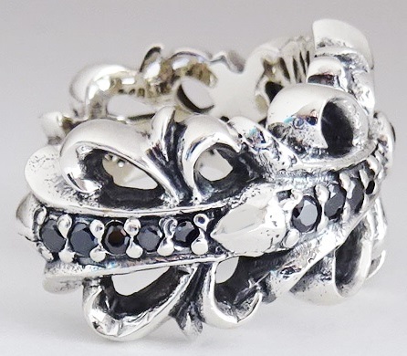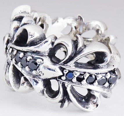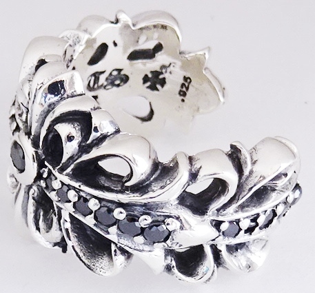 ◆ シルバー925 ダブルフローラル クロスリング 13号 pave ブラックダイア 新品 未使用 ダブル フローラルクロス リング フローラルリング