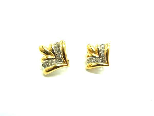 ■美品■ NINA RICCI ニナリッチ ラインストーン クリップ式 イヤリング アクセサリー レディース ゴールド系 DH7576