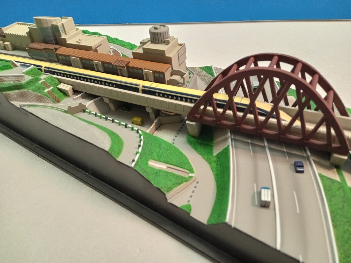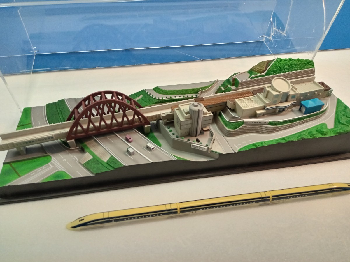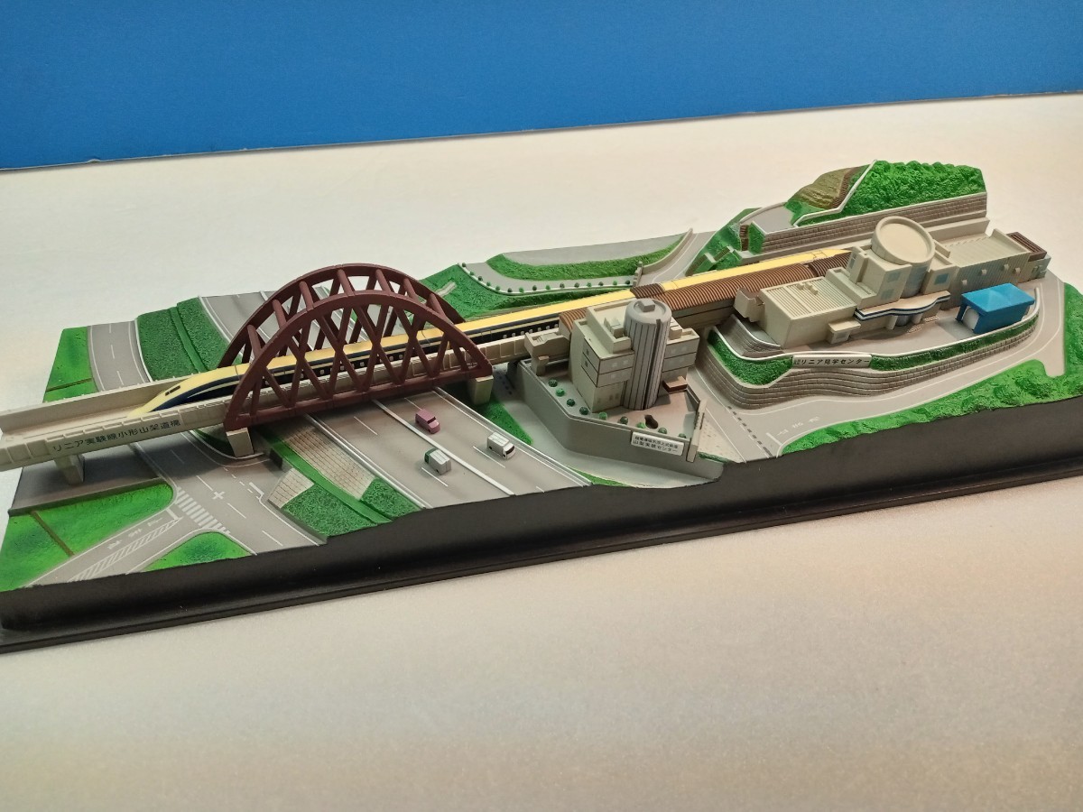 山梨リニア実験線のジオラマです。リニアモーターカーは1両あります。