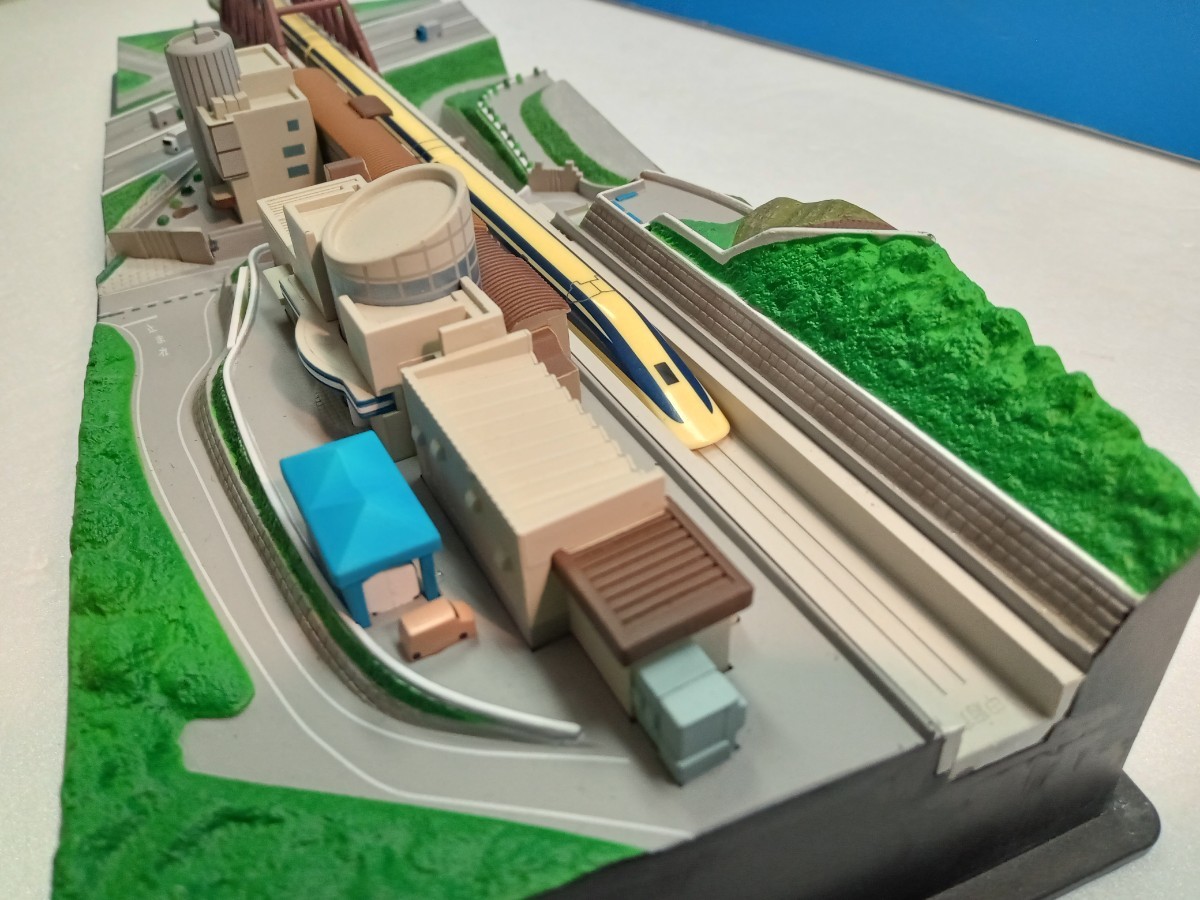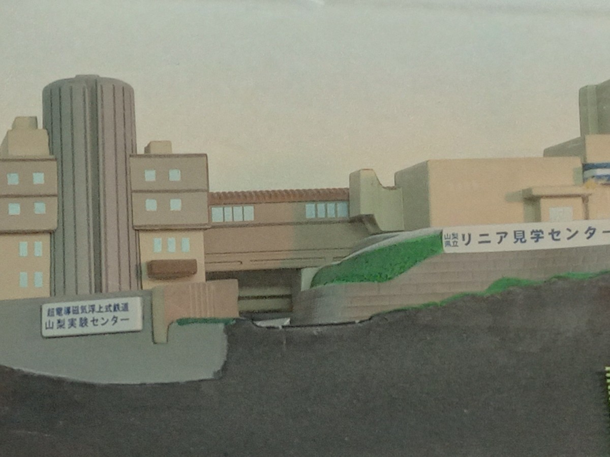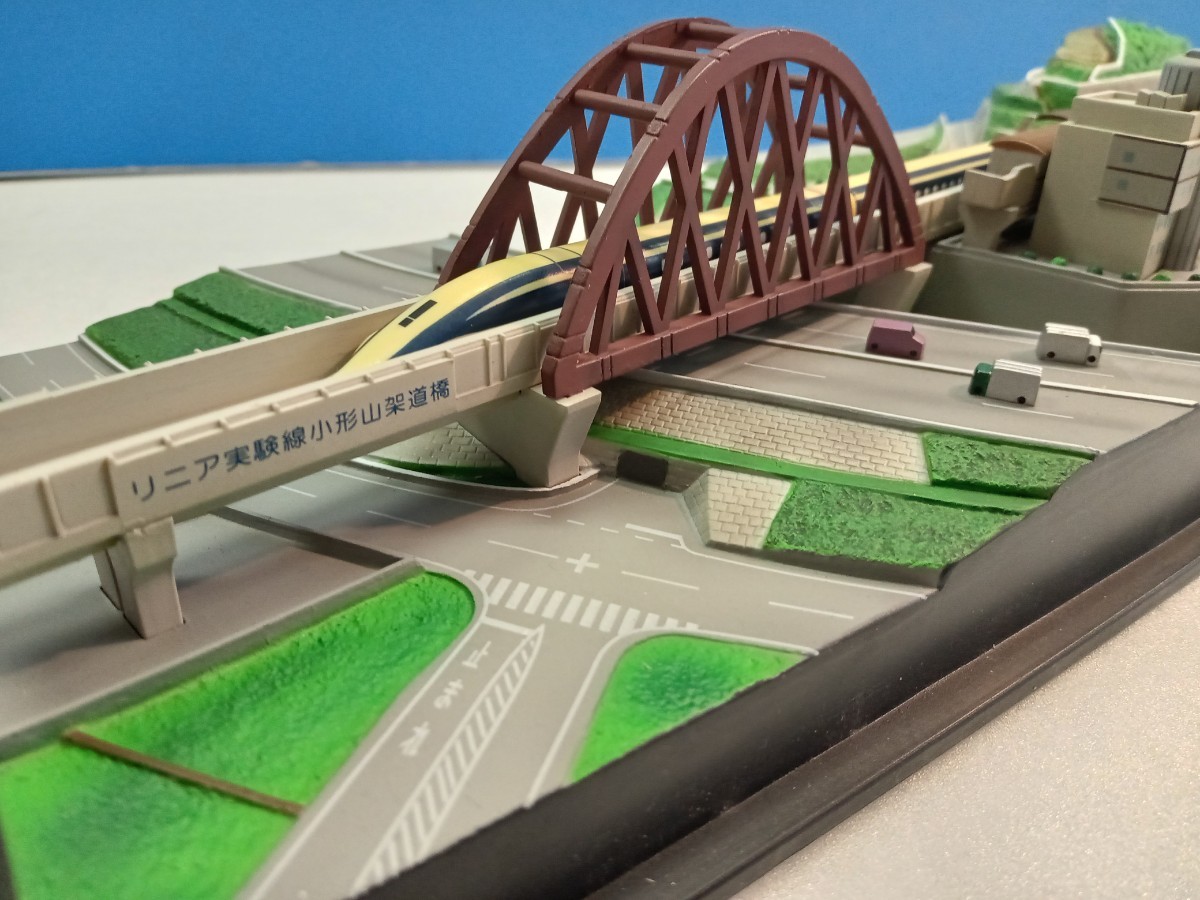 山梨リニア実験線のジオラマです。リニアモーターカーは1両あります。