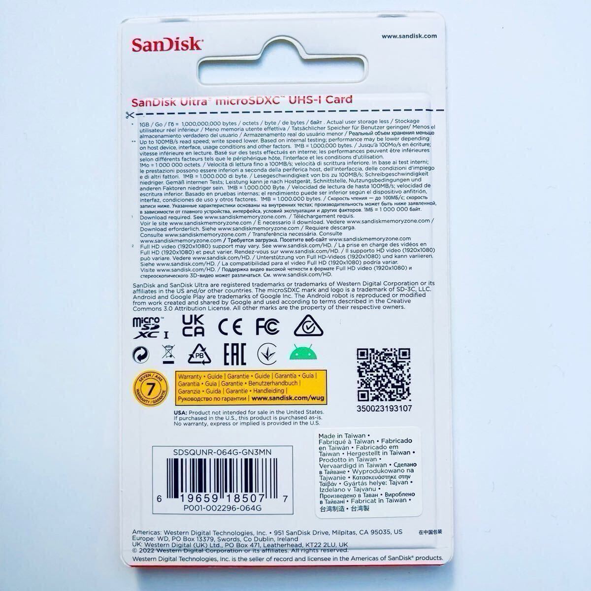 micro SDカード マイクロSDカード 64GB 1枚100M/秒 海外パッケージ正規品