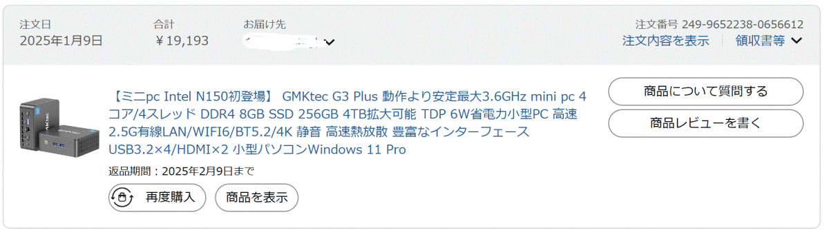 GMKtec ミニPC G3SミニPC mini pc 8GB+256GB SSD 小型デスクトップ 4コア/4スレッド 最大3.6GHz USB3.3×4/HDMI×2 Windows 11 Pro★美品