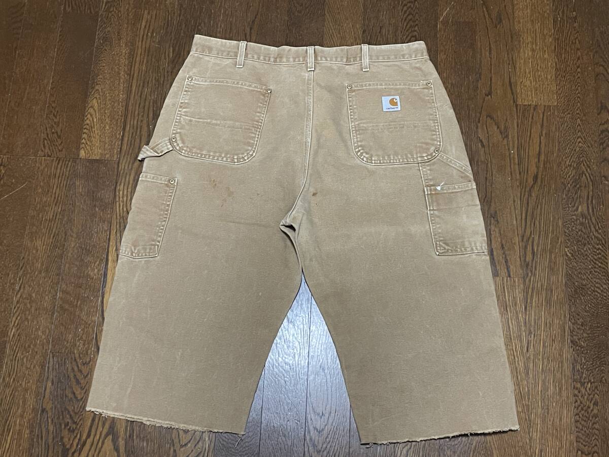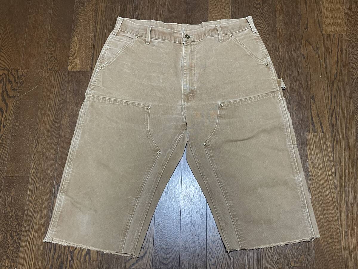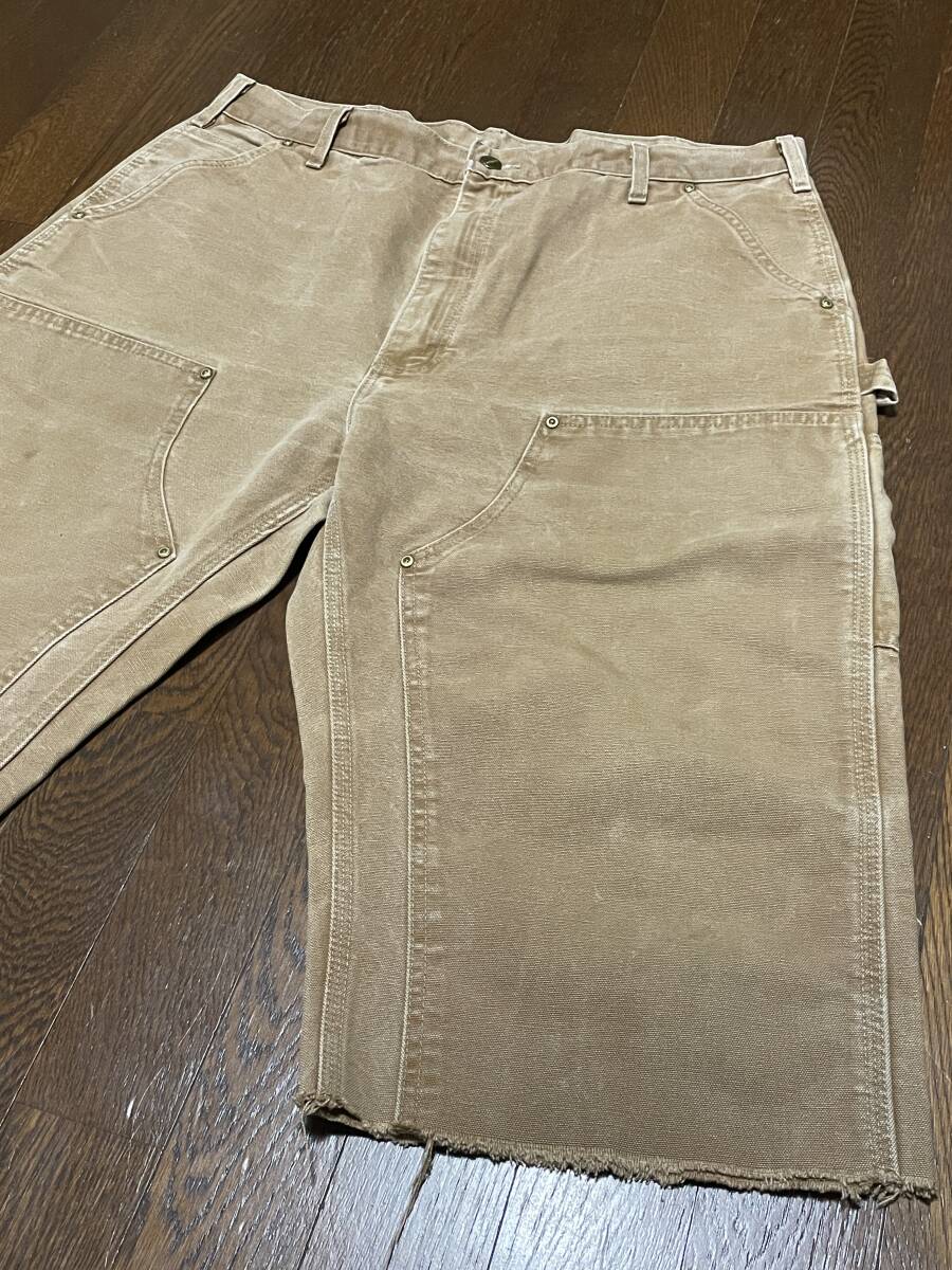 USA製 Carhartt カーハート ダック ダブルニー カットオフ ショートパンツ W38 ブラウン アメリカ製 ショーツ 短パン ペインターパンツ