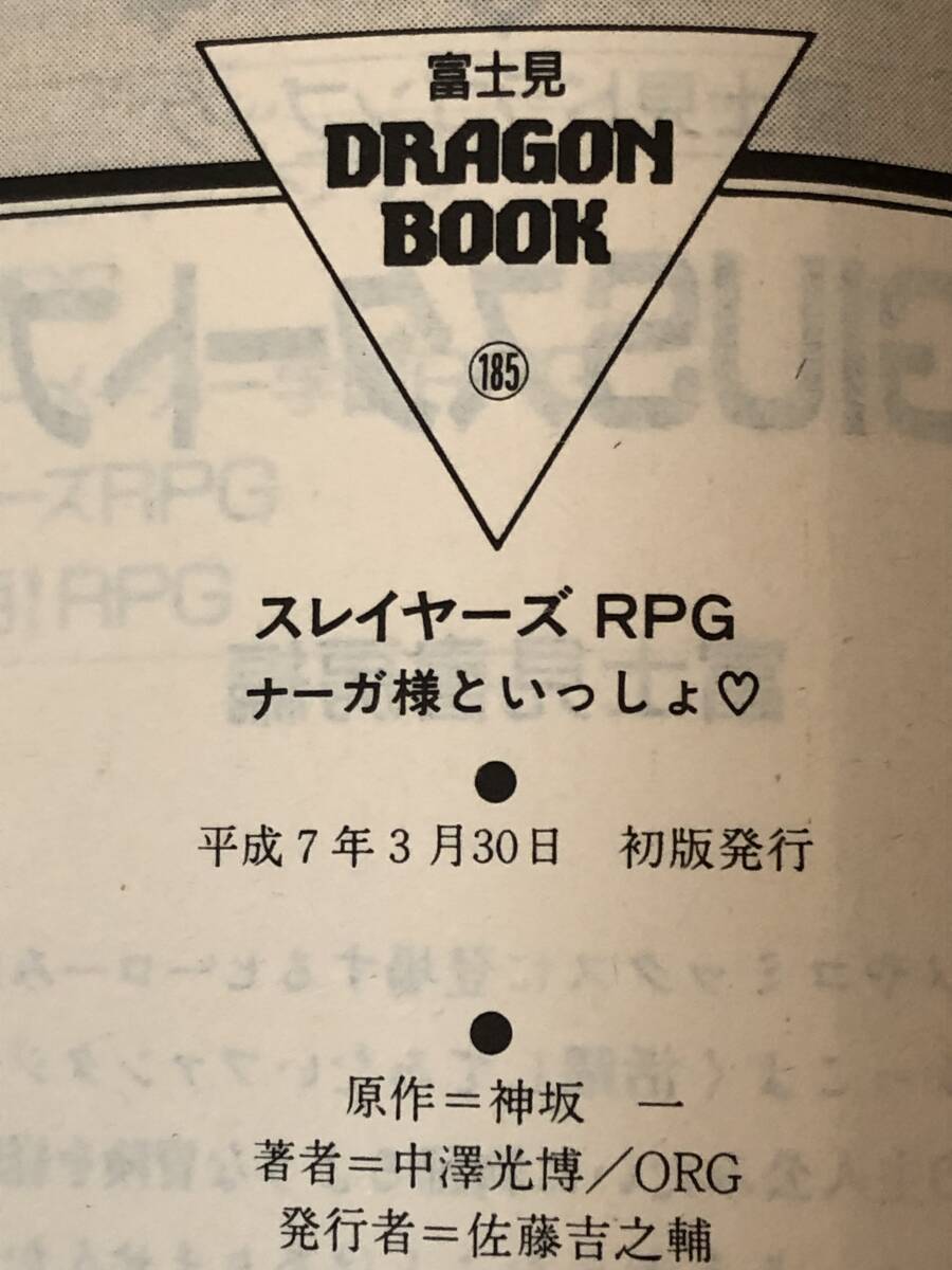 スレイヤーズRPG ナーガ様といっしょ 富士見文庫 富士見ドラゴンブック 1995年初版