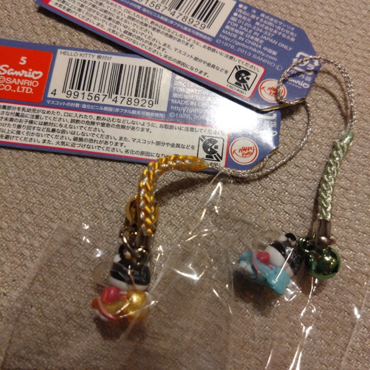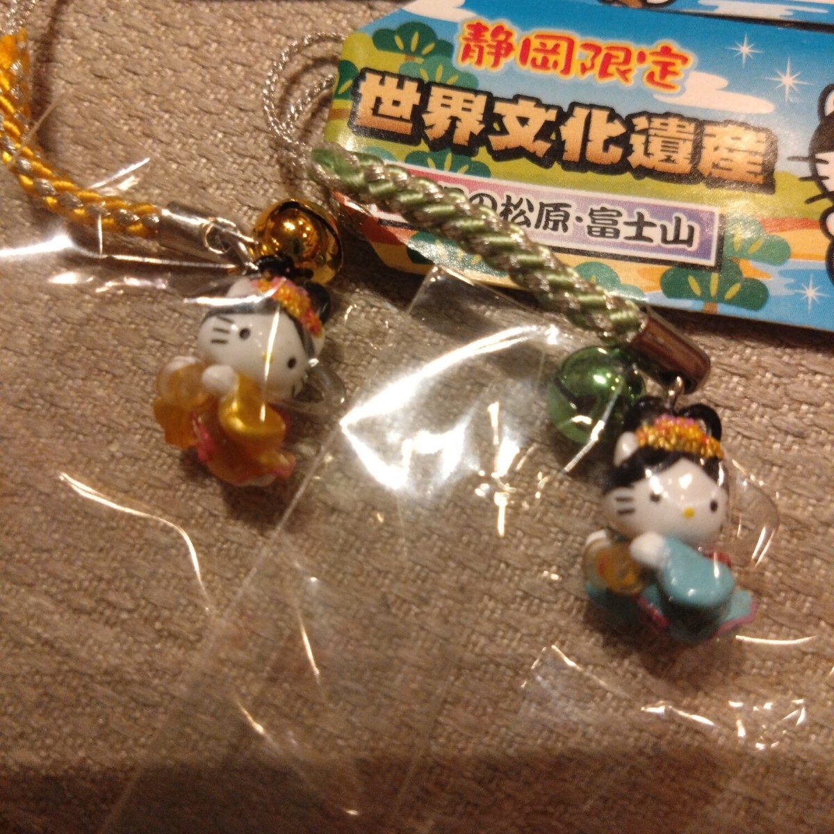 ご当地キティ 2013 世界文化遺産 三保の松原 富士山 羽衣伝説 天女キティ彩根付け ストラップ ピンクゴールド、ブルー 2色セット