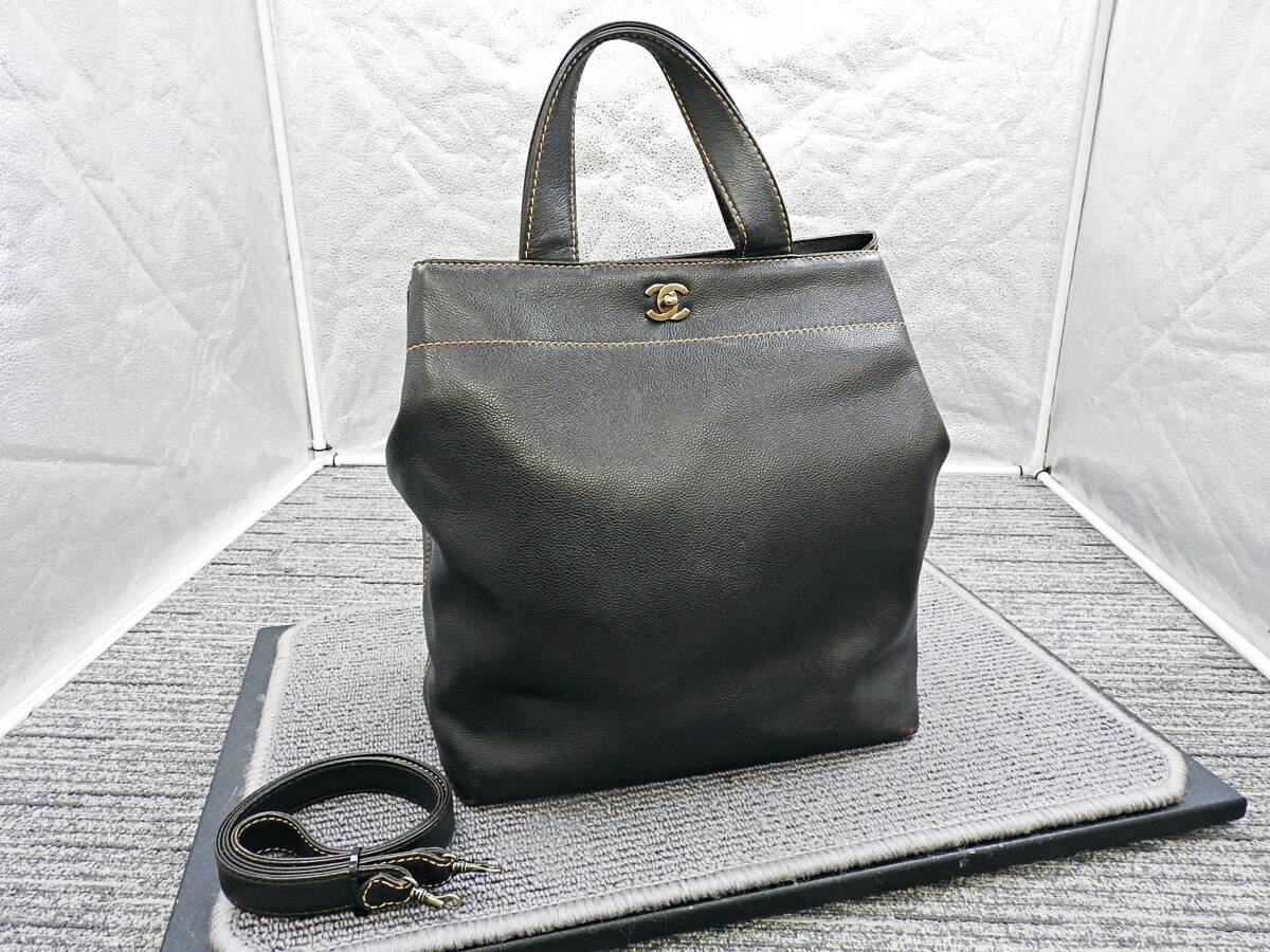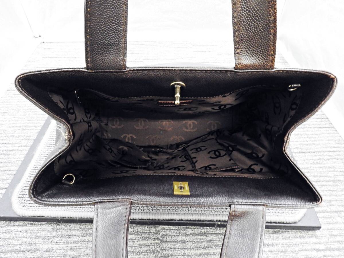 CHANEL シャネル■ハンドバッグ マットキャビアスキン ダークブラウン ターンロック ココマーク 2way■USED品「管理№KT1279」