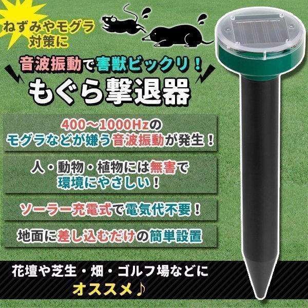 モグラ退治 モグラ撃退器 4本 駆除 ソーラー式 動物撃退器 超音波 退治 モグラ対策 音波振動 花壇 家庭菜園 捕獲器 捕獲