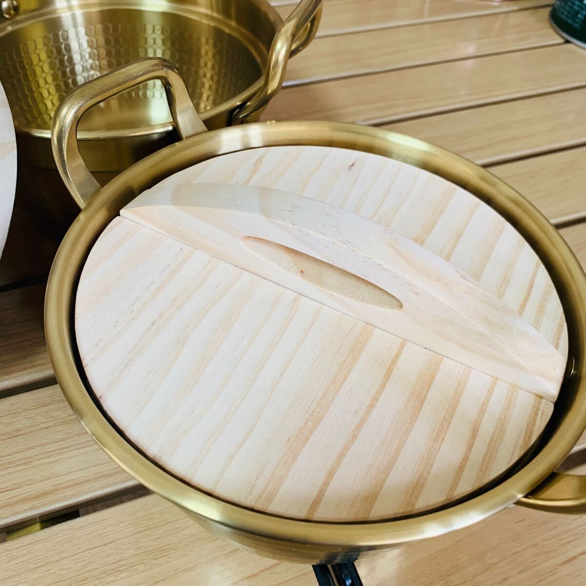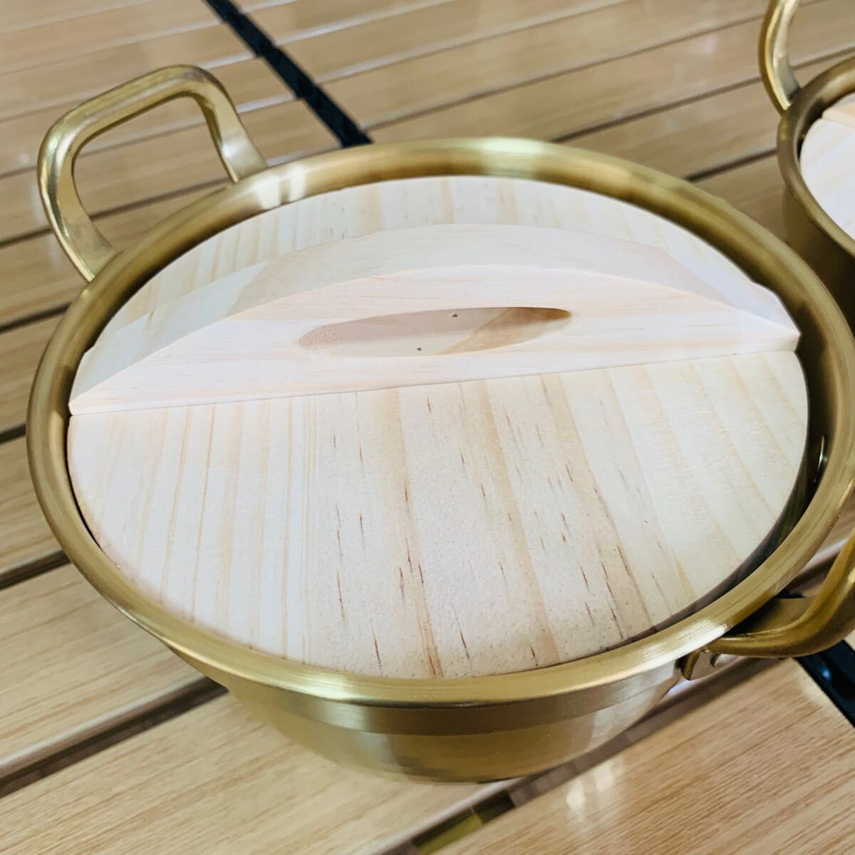 2点セット 限定ゴールド アウトドア 両手鍋 深型鍋 焼き鍋 1.2L 直火とHI ステンレス製 高さ9.5cm 直径16cm キャンプ野外登山