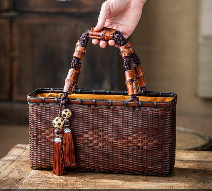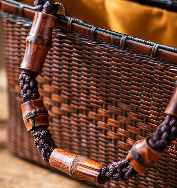 人気高品質 バスケット 収納かご おしゃれ竹籠 編み 取っ手 持ち手  手作りトートバスケット 自然の良品 花火着物かご