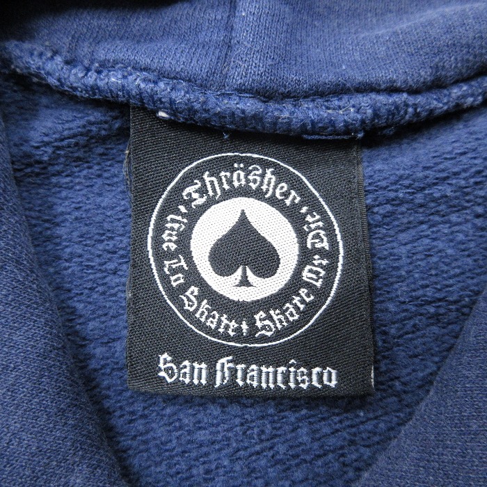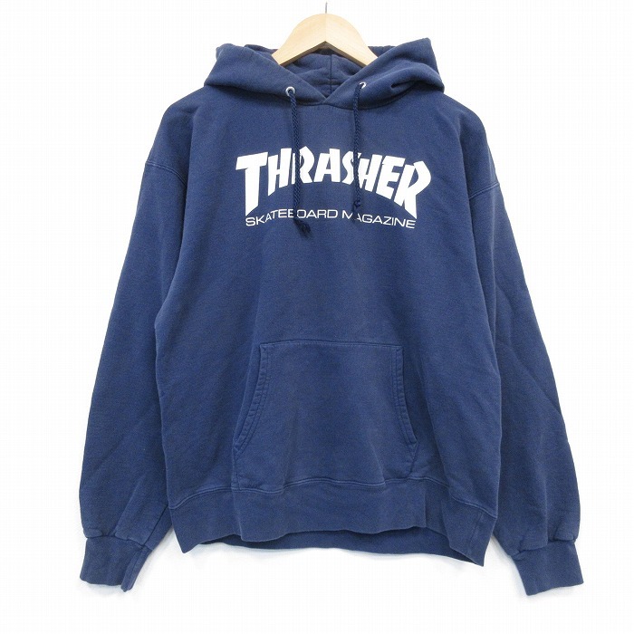 【商品名】 L★古着 スラッシャー 長袖 スウェット パーカー メンズ ビッグロゴ クルーネック 紺