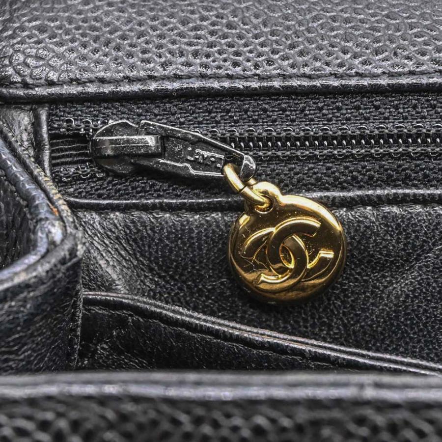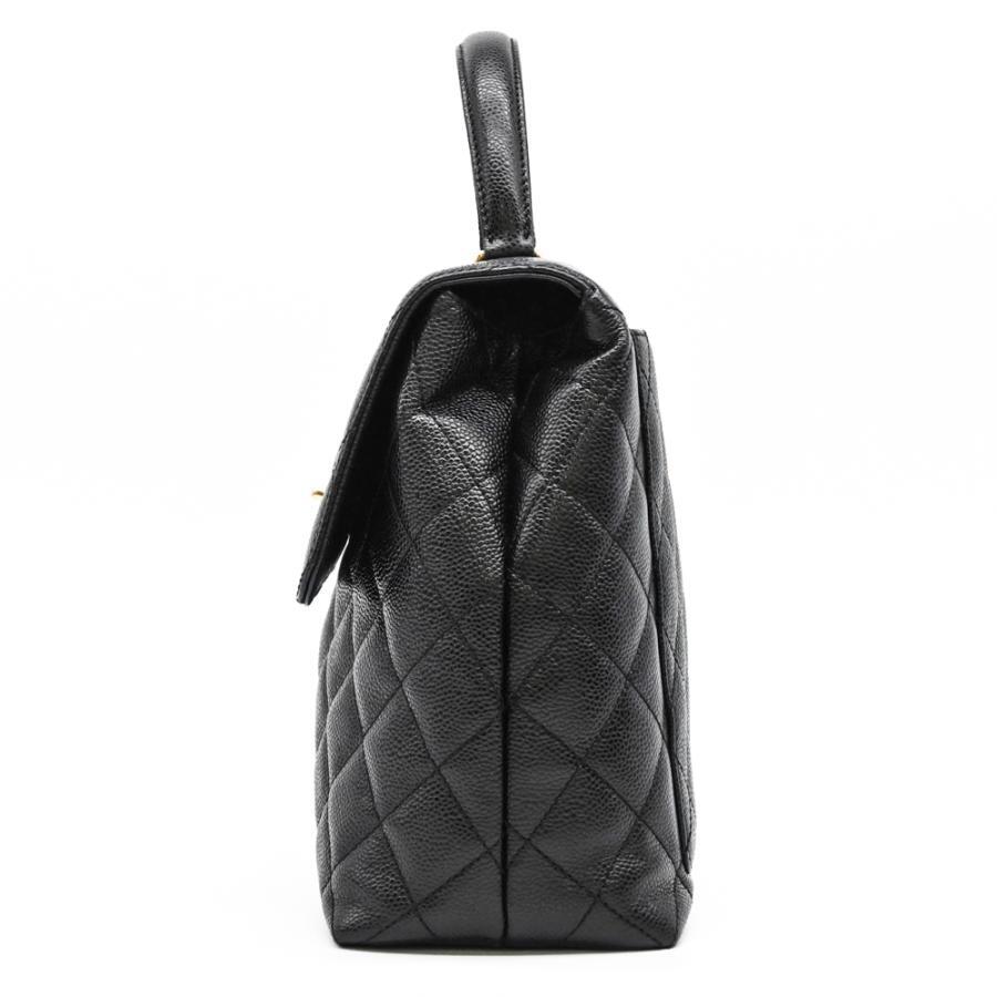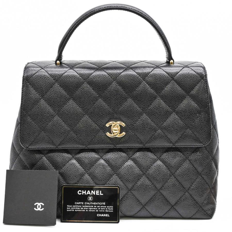 CHANEL シャネル マトラッセ キャビアスキン ケリー型 トート ハンドバッグ ブラック 黒 シール有 A12397