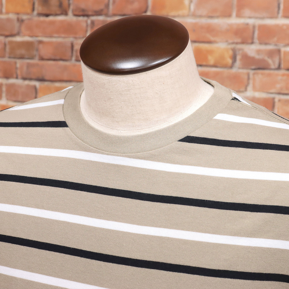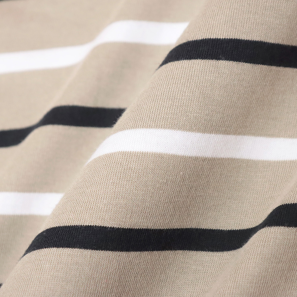 毎日の暮らしに寄り添うシンプルなデザインに、こだわりの配色のボーダー柄が程よいアクセントをプラス。さらりとした天竺編み素材は、季節を問わず快適に着られるのも魅力です。