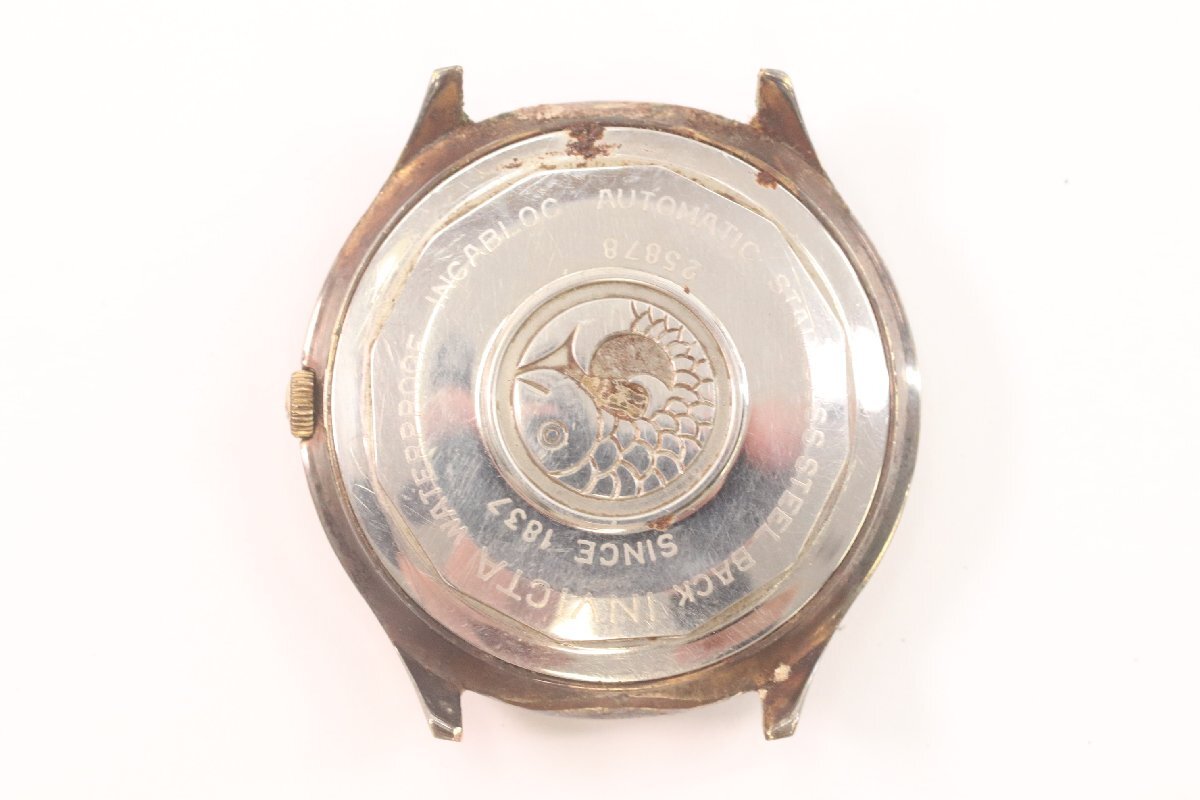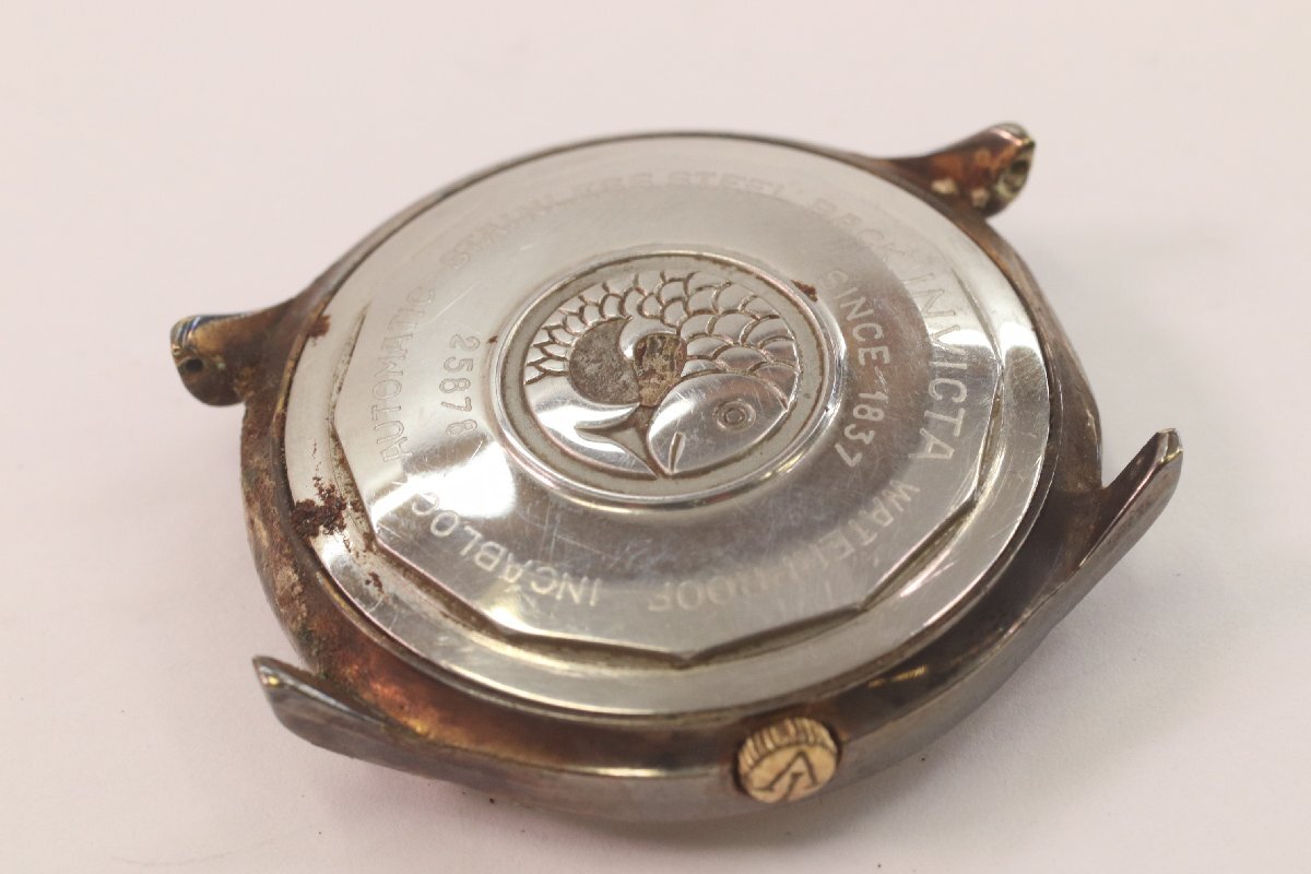 | 商品説明 | 【商品名】 INVICTA インビクタ 25878 41石 自動巻き デイト メンズ 腕時計 ゴールドカラー フェイスのみ アンティーク 稼動品 ケースサイズ:約36mm(リューズ含む) 【商品状態】 ・中古品です。 ・現在稼働しておりますが、長時間の動作確認は行っておりません。 ・リューズでの時刻合わせは確認済みです。 ・また、時刻合わせの際に0時で日付が切り替わることも確認済みです。 ・リューズ操作で日付の早送りは確認出来ておりません。 ・本商品は完璧な動作を保証するものではありません。 ・オーバーホールなどを行う事を前提としてお考え下さい。 ・擦れや汚れ、くすみ、錆、メッキのがれ、全体に目立つ変色、風防に傷、汚れ、文字盤内に汚れ、針に錆等の腐食がございます。 ・ベルトの付属しないフェイスのみの商品です。 ・現状上記は確認できておりますが、電池交換やオーバーホールをしておらず、商品出品時と商品到着時に一定の時間が経過する為、必ずしも同じ状態とは限りません。 ・商品到着時に上記動作確認が出来ない場合も返品はお受け致しかねます。 ・商品状態に関しましては画像にてよくご確認ください。 ※メンズやレディース等の記載があるものは弊社での主観となりますので、参考程度にお考えください。 ※USED品につき状態が気になる神経質な方、こだわり過ぎる方のご入札はご遠慮お願いします。 |
