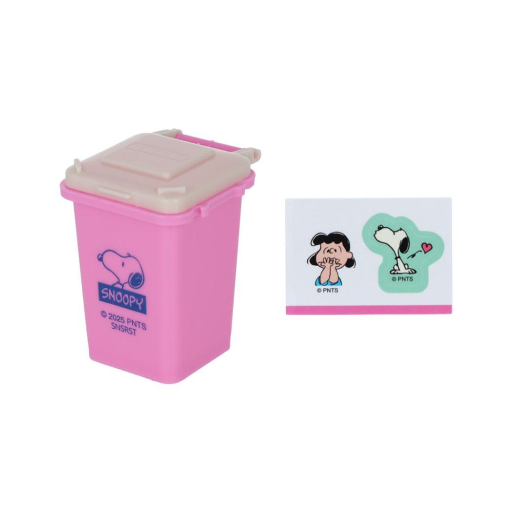 Favorite Storyシリーズ 大人気PEANUTS/SNOOPYグッズにまたまた可愛いnewアイテム登場PEANUTSコミックのストーリーを楽しめるデザインシリーズこちらはとってもかわいい[ミニチュアダストボックス]並べて可愛いミニチュアサイズのダストボックス型の小物入れフタを開けて小物を入れられます。本体に貼れるプチシール付き。デザイン8種類セット販売です(8個入)