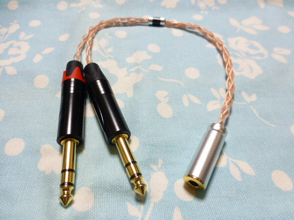 コネクタ間全体ケーブル長は約24cm、分岐点から6.3mmプラグ根元まで約10cmです。