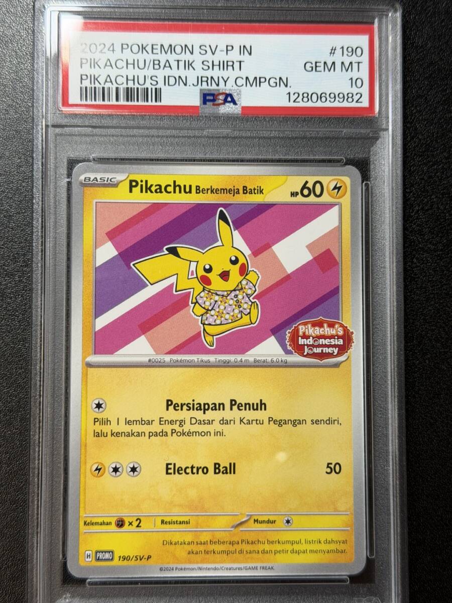 PSA10 2024 バティックシャツを着たピカチュウ インドネシア プロモ ポケモンカードゲーム (AABE3C-009)