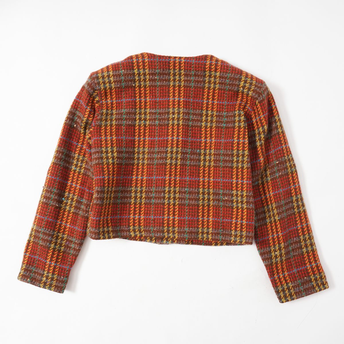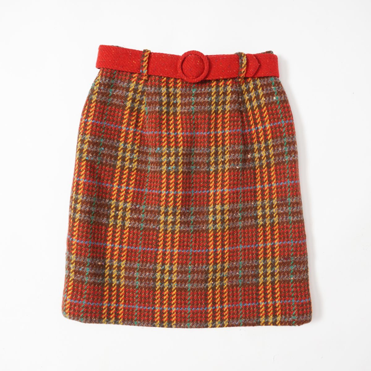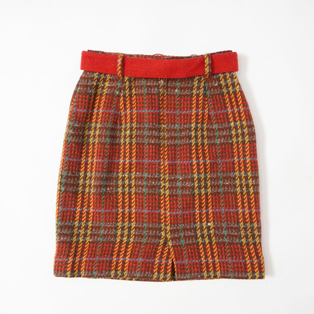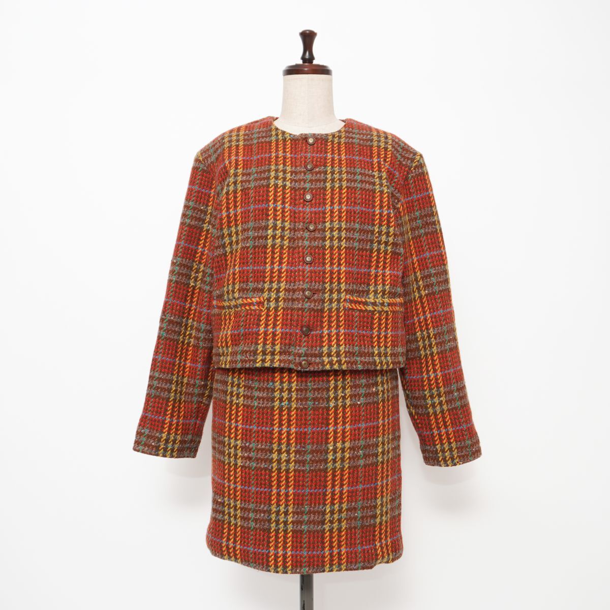 美品 NAF NAF ナフナフ チェック柄マルチツイードセットアップ ノーカラージャケット タイトミニスカート ベルト 赤 レッド サイズM*KD182