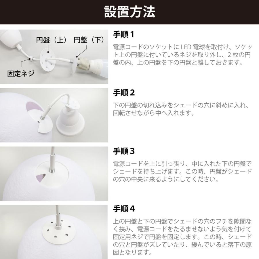 本製品は月の形状と光に着目し、本物の月に限りなく近づけました。月の優しい光で団欒のひと時に癒しと温もりをお届けします。吊り下げて使用する為、よりリアリティのある月になります。寝室や子供部屋等あらゆるお部屋にマッチし、毎日お月見をお楽しみいただけます。