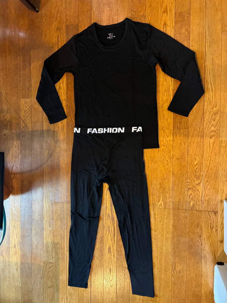 新品E17 EUメーカー 100%高伸縮化繊素材コンプレッションベースレイヤー シャツ&パンツセット M
