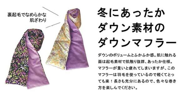 | 内 容 | ■カミ―ル ダウンマフラー ■サイズ:14×170cm ■組成:ポリエステル100% ■充填物:ダウン50% フェザー50% ■充填物重量:0.035kg ■カラー:ベージュ ダウンのボリュームとふわふわ感。 肌に触れる裏地は裏起毛で肌触り抜群、あったか仕様。 暖かさの秘訣は中の羽毛、グレイダックダウン。 ダウンは羽毛の中で最も繊維がやわらかい 「綿羽」と呼ばれる部分。 一羽からわずかしか採種できない貴重な素材です。 立体体な構造で織羽があり、 大量の空気えお蓄えてすばらしい保温性を発揮します。 ふかふか・ふくらなボリューム感を味わって下さい。 ◆総額 8250円相当 |