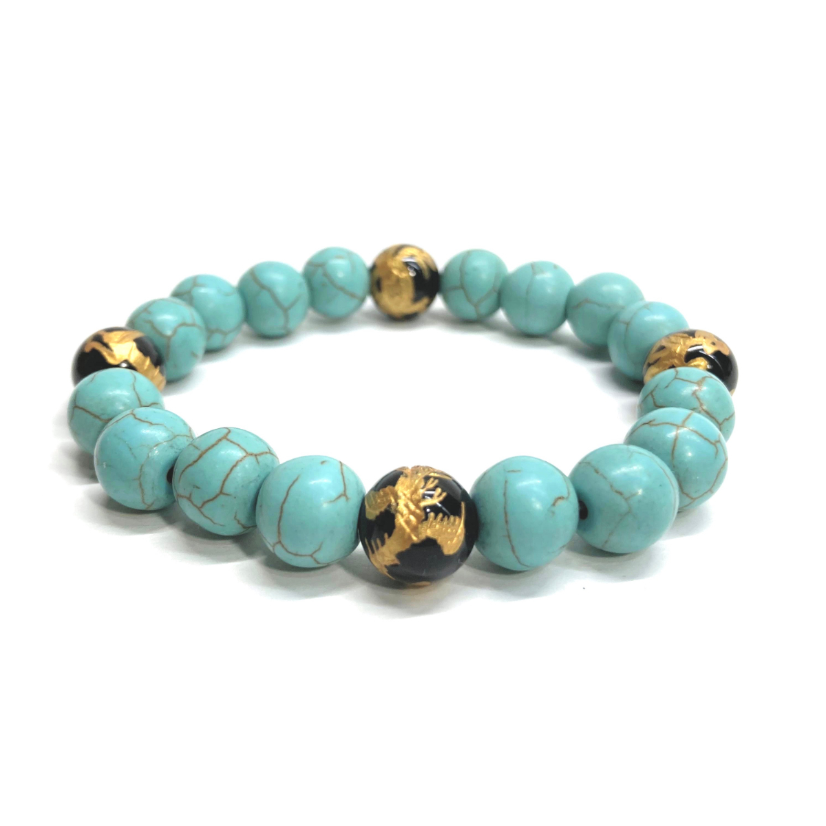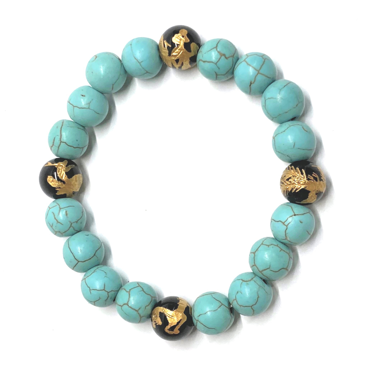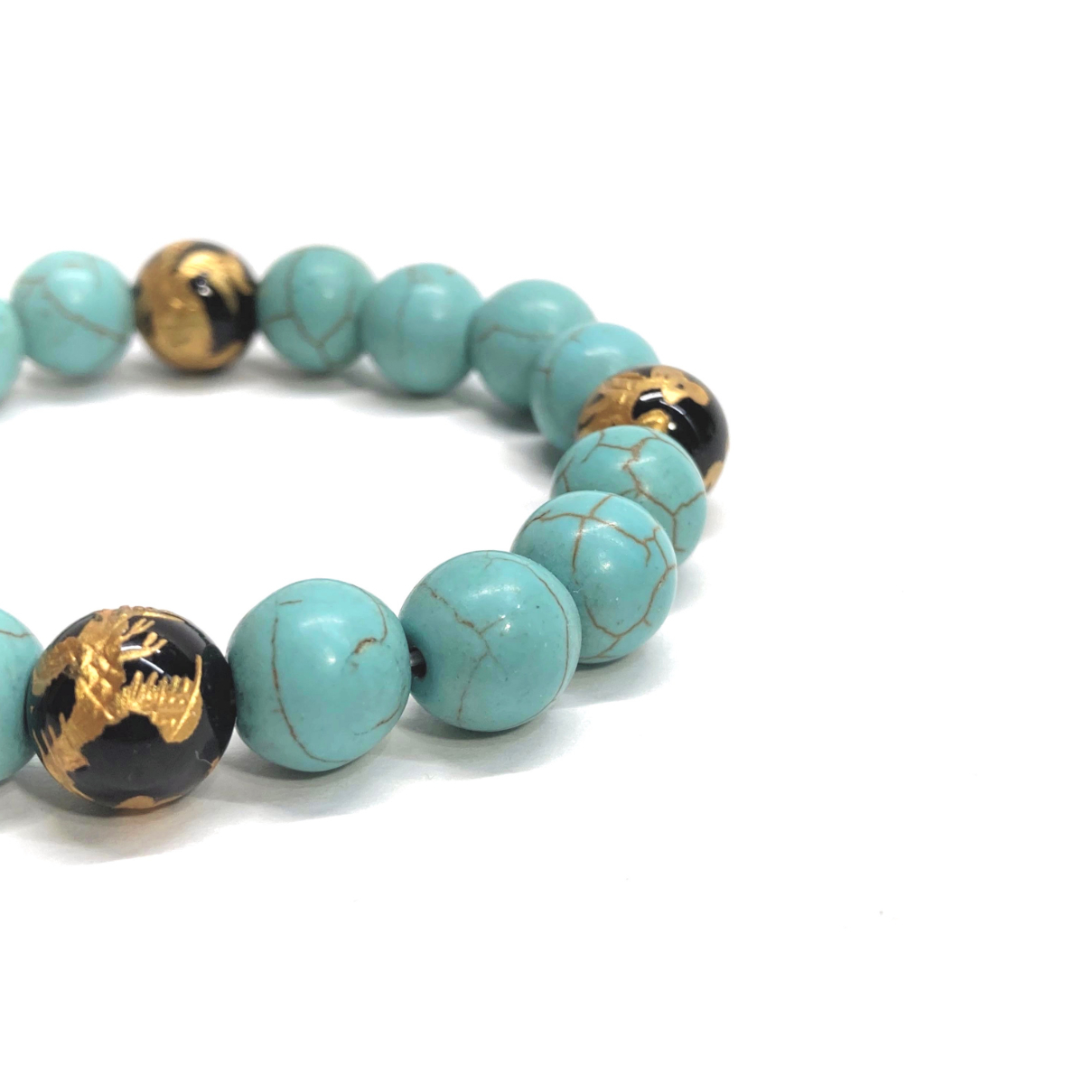 10mm 四神獣金彫オニキス×ターコイズ パワーストーン ブレスレット天然石 運気上昇 開運 金運 恋愛運 青龍 白虎 玄武 朱雀 #2 ☆