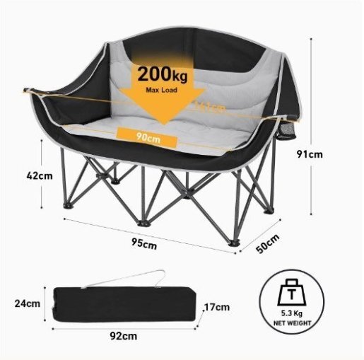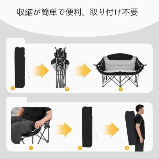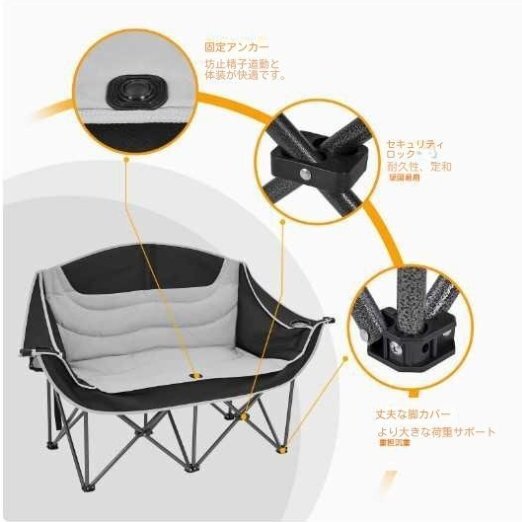 高品質、アウトドアキャンプ折りたたみ2人掛け椅子、多機能、便利、収縮可能
