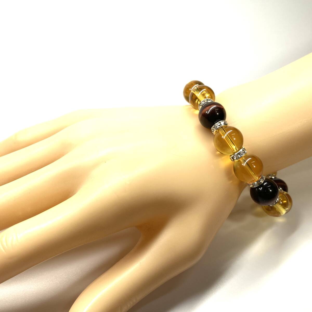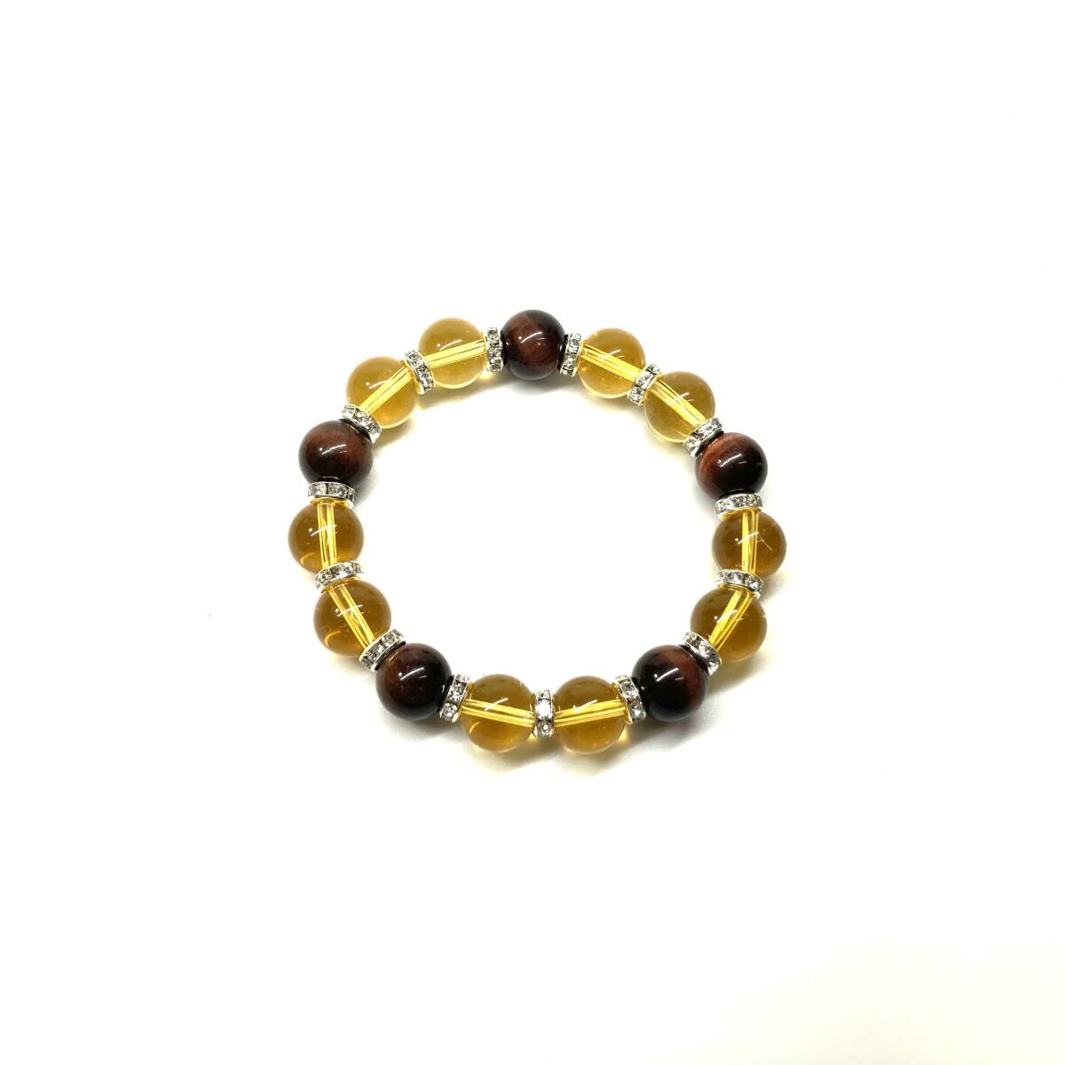 こちらは、レッドタイガーアイとシトリンを組み合わせたパワーストーンブレスレットです。間にはロンデルを挟み高級感あるデザインに仕上げております。石大きさは12mm玉を使用して内周約18cmです。気になる方は是非この機会にどうぞ。