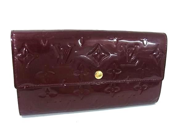 1円 LOUIS VUITTON ルイヴィトン M91521 モノグラムヴェルニ ポルトフォイユ サラ 二つ折り 長財布 ウォレット ワインレッド系 GA6847