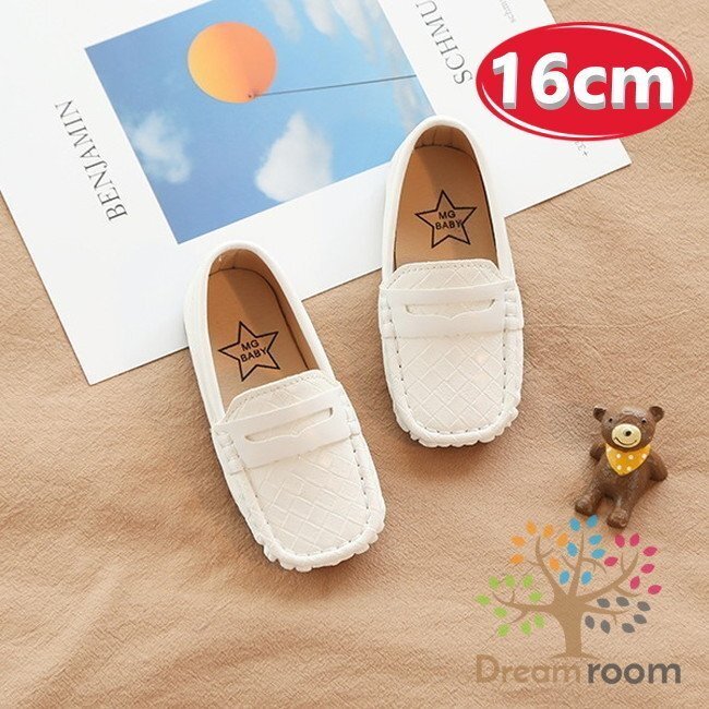 kids イントレチャート ローファー シューズ 【ホワイト 16cm】靴 フォーマル 編み込み 合皮 入学式 レザー