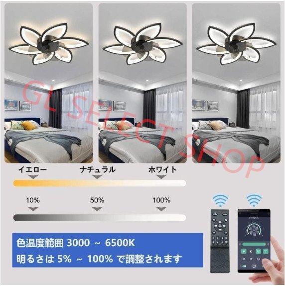 多機能:ランプはファンと照明装置を組み合わせており、リモコン、Bluetooth APP、調光、色温度調整、明るさ調整、6速風速調整、スリープモード、ファンの正転および逆転機能(夏-冬)を備えています。動作)、時間制御機能