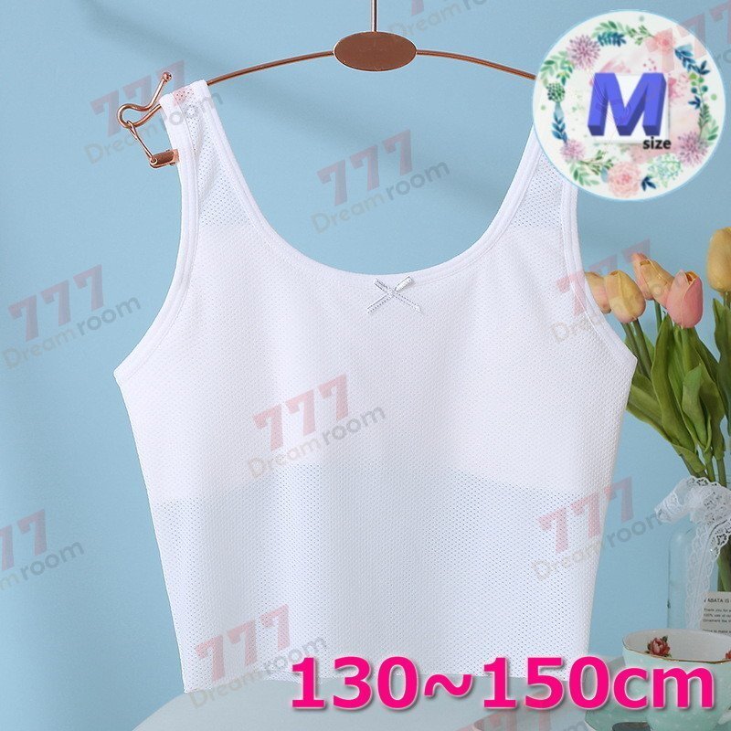1スタ☆kids 通気性◎ タンクトップ ハーフブラ【M】ホワイト 130-150cm 夏 スポーツブラ 子供 ファーストブラジャーインナー K-405-03