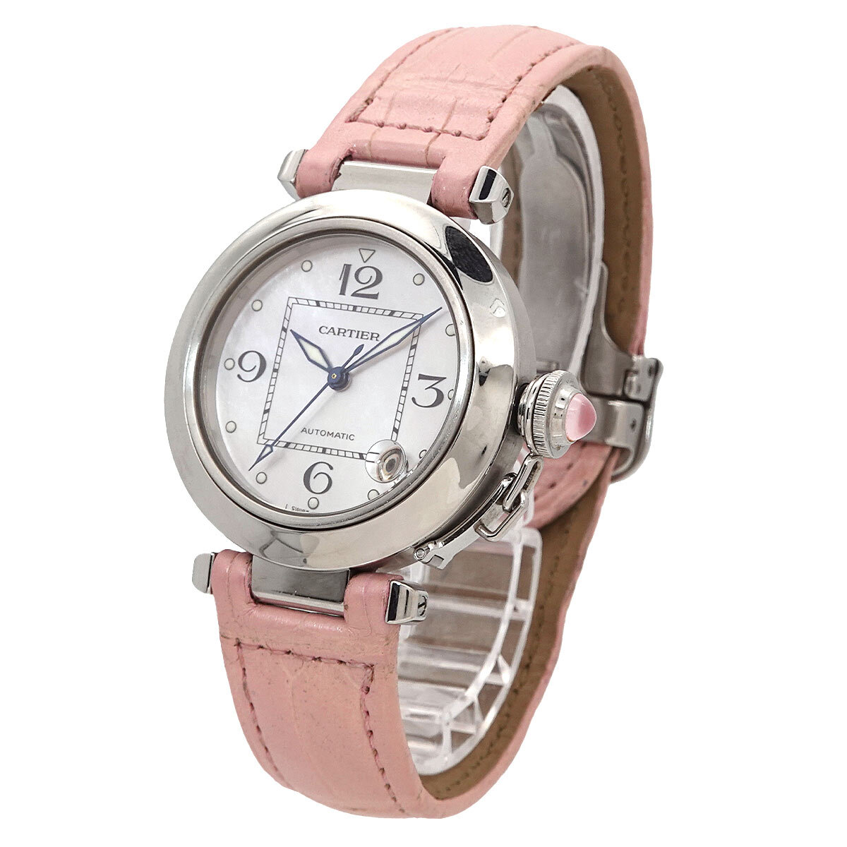 | 商品概要 | カルティエから2003年のクリスマスに限定販売された『パシャC』レディース腕時計です。ステンレスケースに美しいピンクシェル文字盤が見事な融合!華やかで上品な大人の女性に送る素晴らしい時計です♪ |