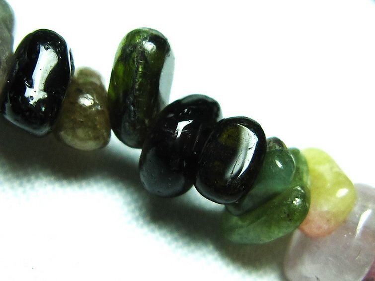 | ■商品名: ミックスカラートルマリンブレスレット ■商品ID: L331-148 ■商品重量:約 9g ■商品サイズ:内周約:155mm(±5mm) 【トルマリン(電気石)】 トルマリンはマイナスイオンを発生する健康の石として近年大流行している石です。無色、黒、青、赤、ピンク、黄、緑、紫などの多種多様な色に富み、バイカラーやパーティカラーの場合もあります。宝石としても扱われる大変美しい宝石です。 トルマリン全般に共通する効果としては、持ち主の本来の能力や魅力を開花させ、前向きなエネルギーを与えてくれるとされています。また心と身体のバランスを取り、イライラも鎮め、有害な電磁波を防ぐともされていますので、オフィスワークには欠かせない石です。 ◎ブラックトルマリン 健康運のアップ、精神力の強化、対人関係の改善。 ◎グリーントルマリン 安眠効果、不安や孤独を和らげる、感受性が高まる。 ◎ピンクトルマリン 恋愛運のアップ、女性的な魅力を高める。 ◎ウォーターメロントルマリン 陰と陽のバランスを取る、安定、個性を伸ばす などの効果あるとされています。 ■ワンポイント情報 トルマリンの和名は「電気石」。その名の通り摩擦したり熱を加えると帯電し、静電気(マイナスイオン)を発生します。近年のマイナスイオンブームにより、注目度の高まった石ですが、健康効果などは未だ研究中となります。 トルマリンの性質を生かしたい場合には、ブレスレットやネックレスなど、肌に触れてのご使用がベターだと思われます。 |