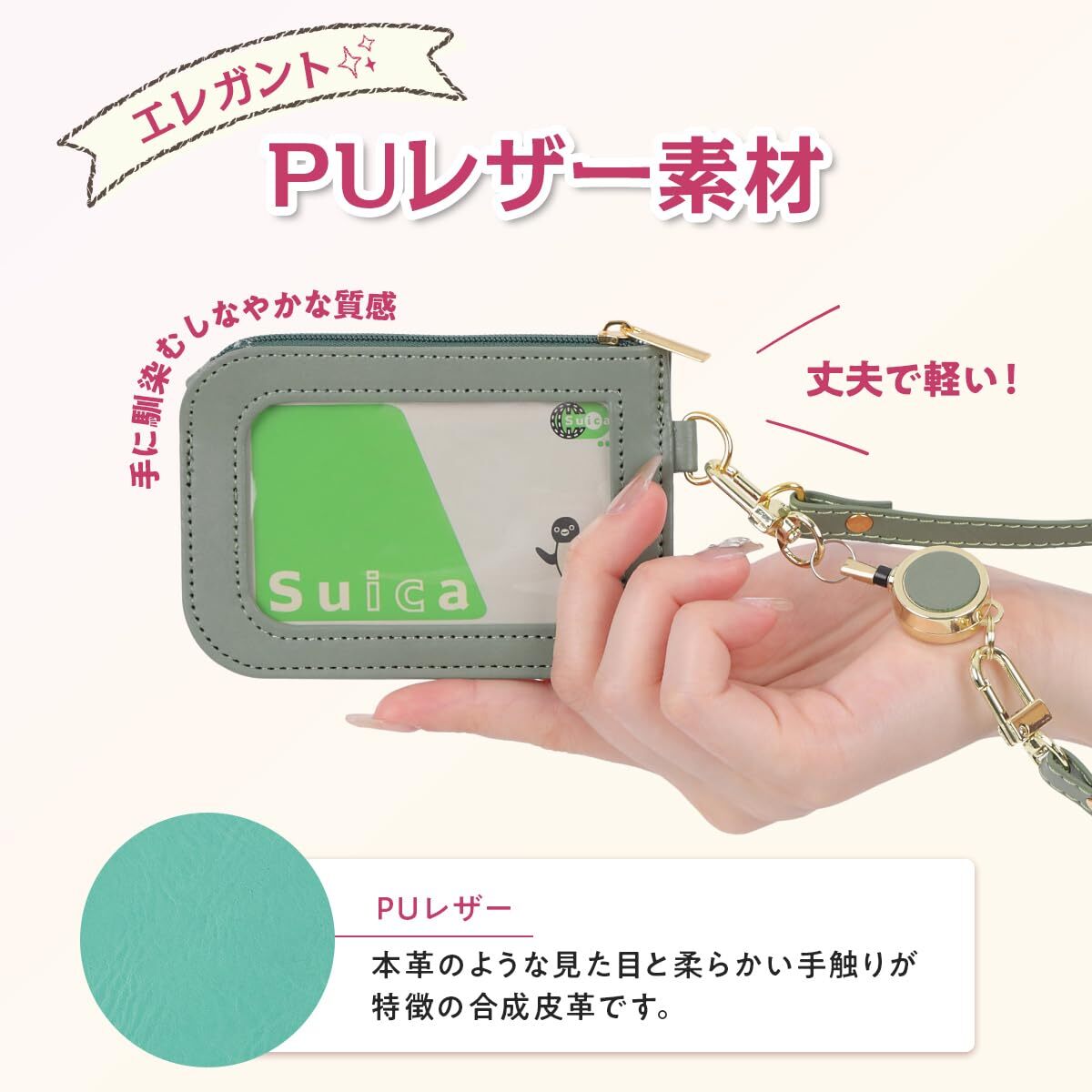 [UPALL] パスケース 子供 落ちない リール付き 定期入れ なくさないパスケース スイカケース 首掛け メンズ レディース (ネックストラップ, ミントグリーン)